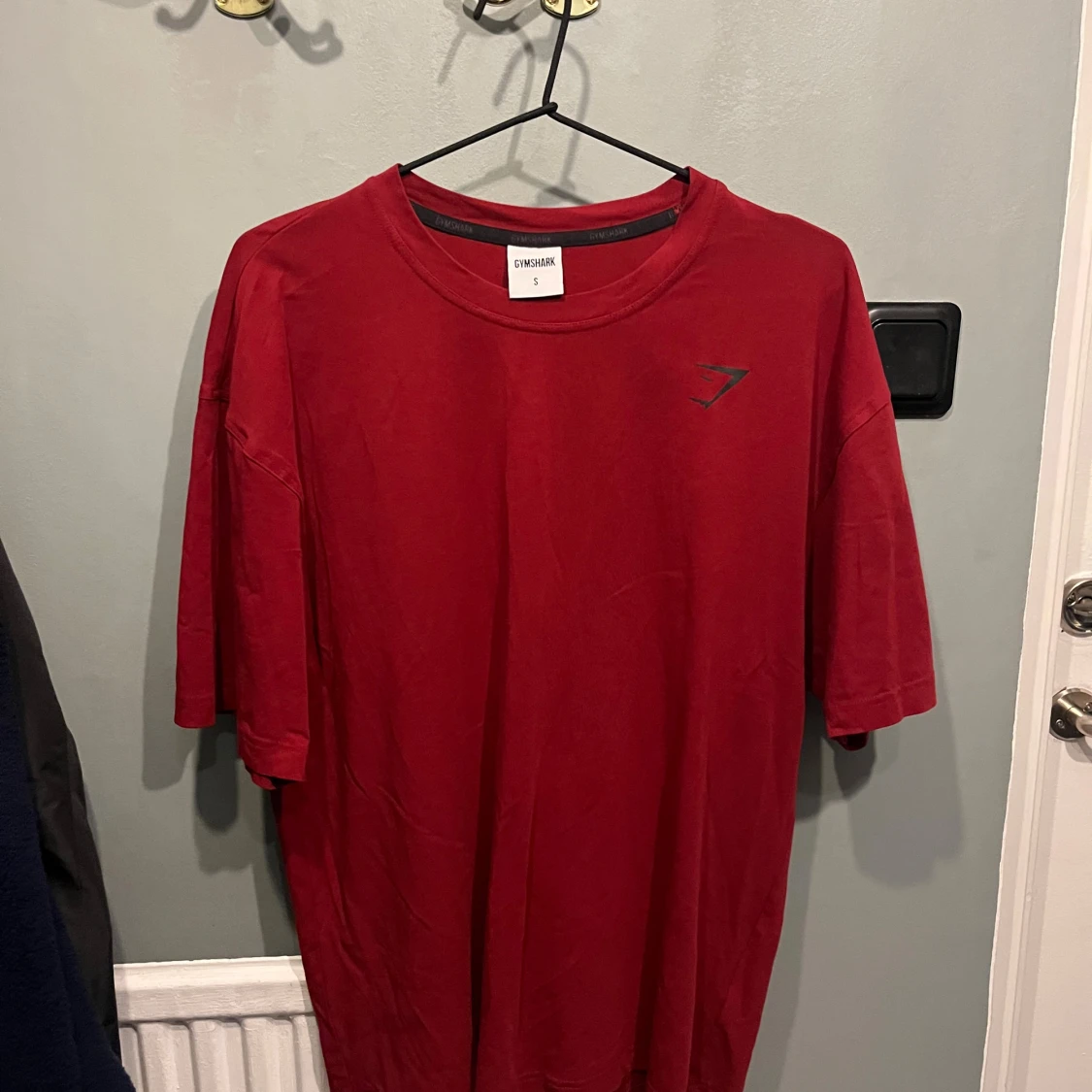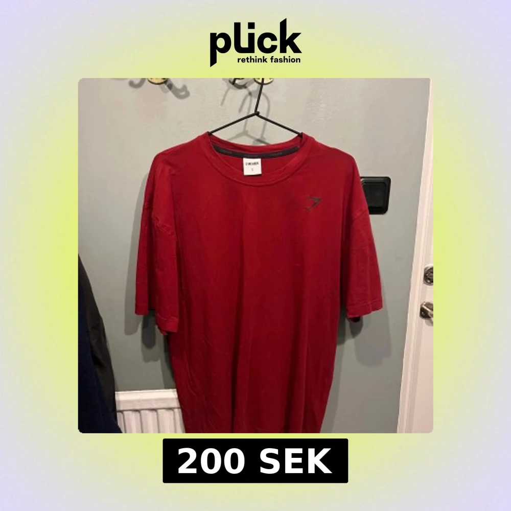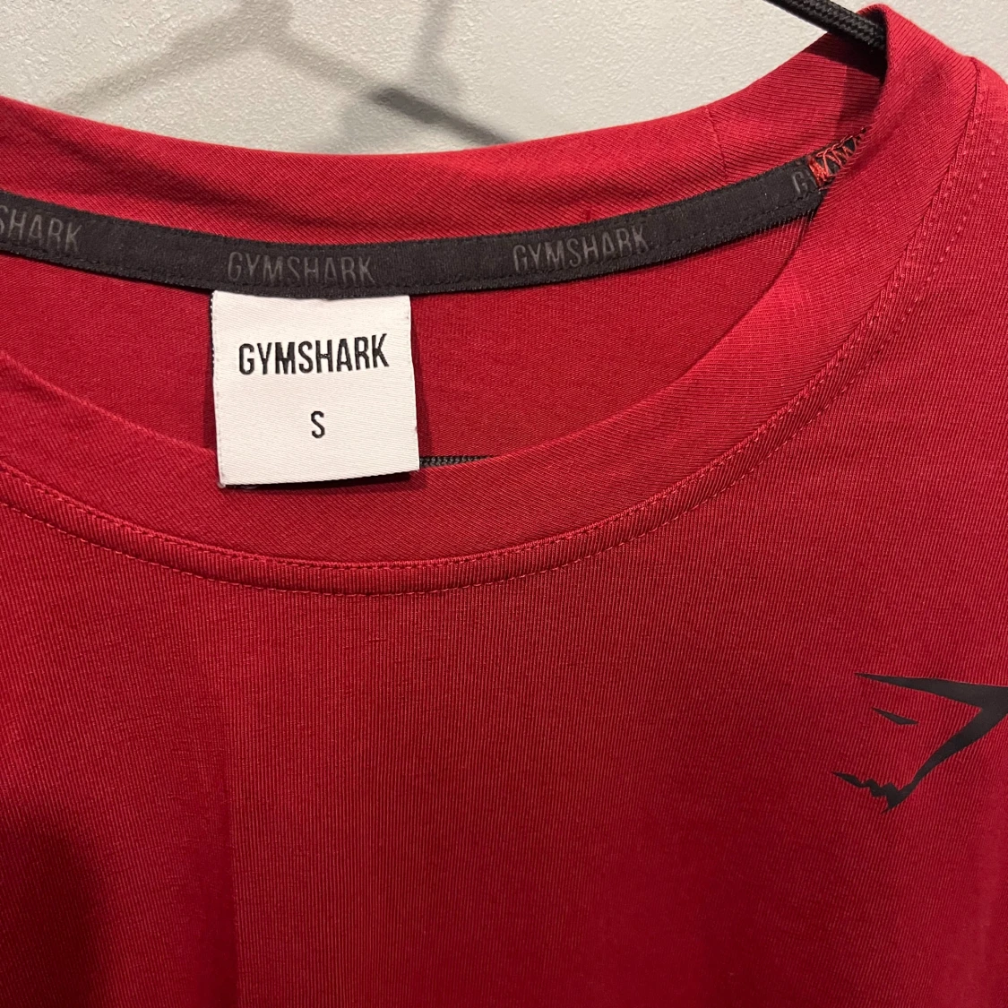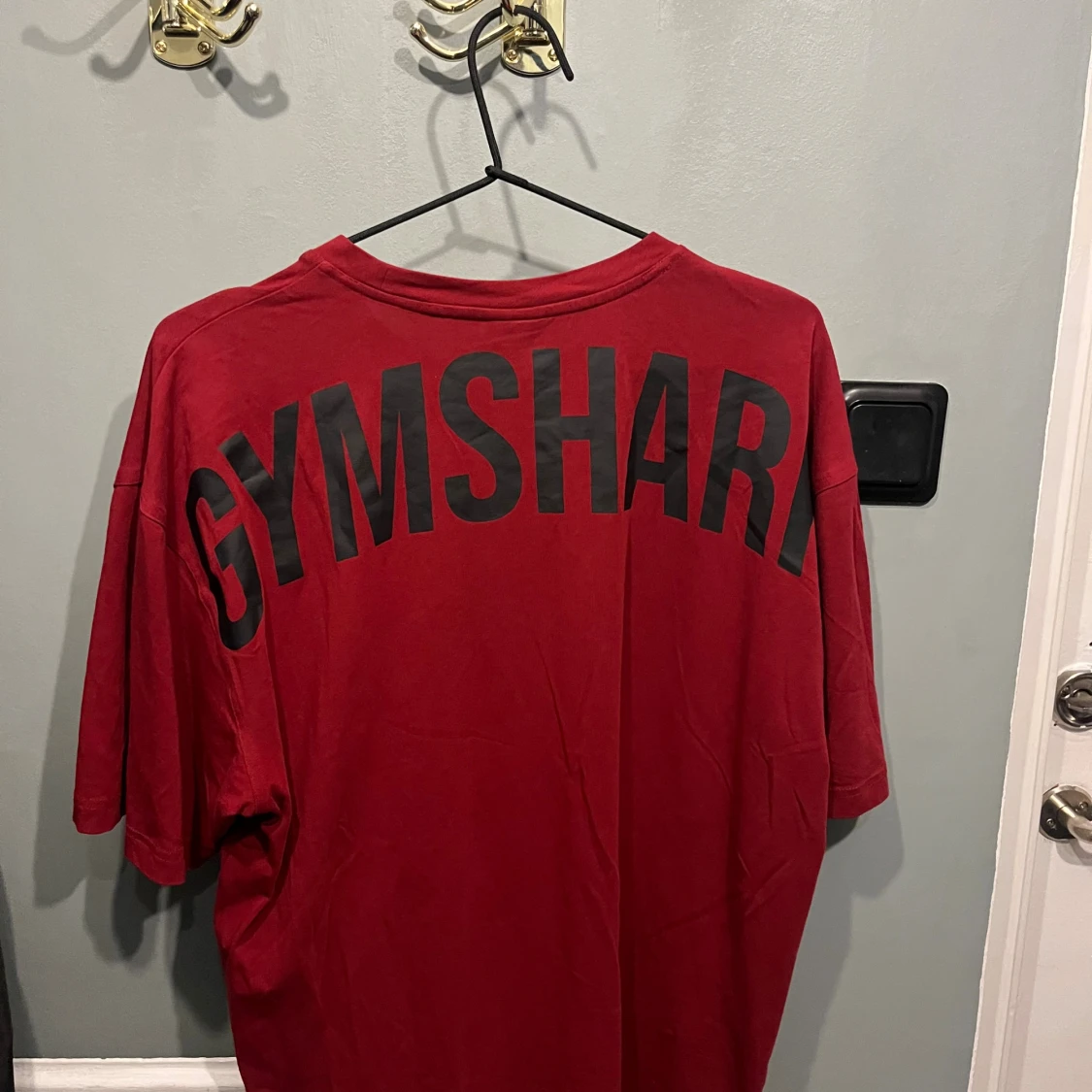 Röd t-shirt från Gymshark i oversized modell med svart logga på bröstet och stor GYMSHARK-tryck på ryggen. Klassisk rund halsringning och korta ärmar. Perfekt för gymmet eller chill dagar. Mjuk och skön bomullskvalitet.