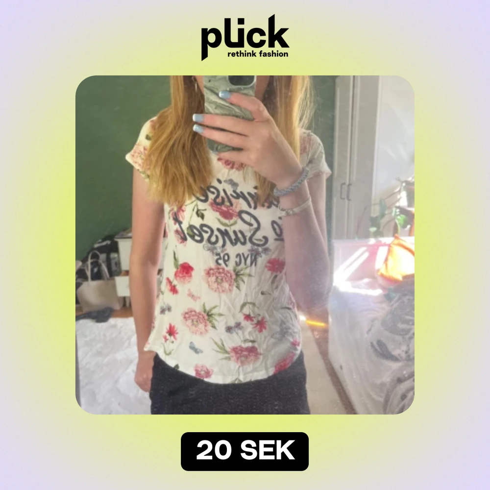 En vit tröja med blommor på. Den är i väldigt bra skick men säljer för att den är för liten!💖På den står texten ”Sunrise to Sunset NYC 95. Om det är några frågor är det bara att fråga! Priset kan diskuteras💜