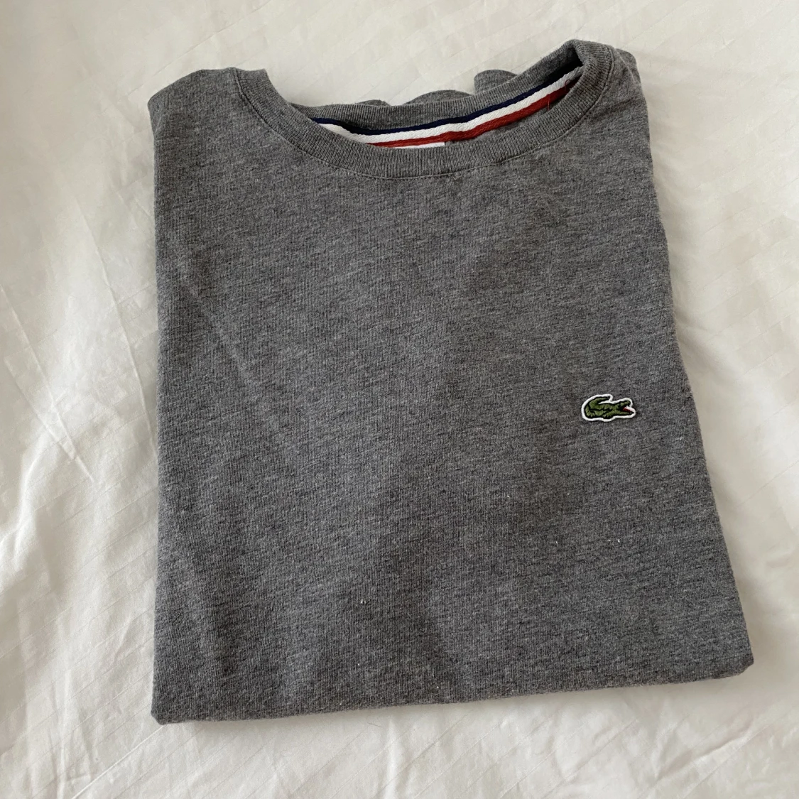 En söt, grå T-shirt från märket Lacoste i storleken XS. Tröjan är i fint skick då den inte kommit till användning. Den är i barnstorleken ”164” och motsvarar en XS i damstorlekar.