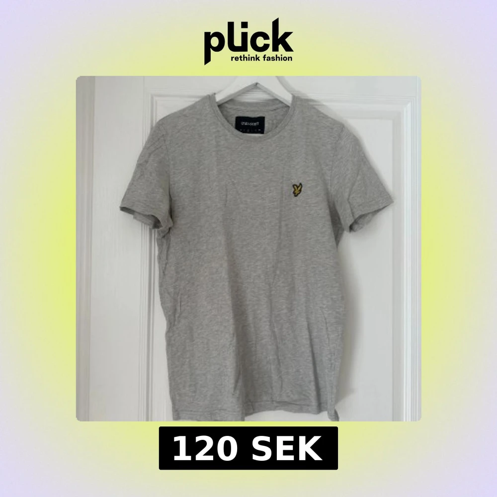 Säljer en stilren grå t-shirt från Lyle & Scott med ett broderat gult emblem på bröstet. T-shirten är kortärmad och tillverkad i mjuk bomull. Perfekt för en avslappnad look.