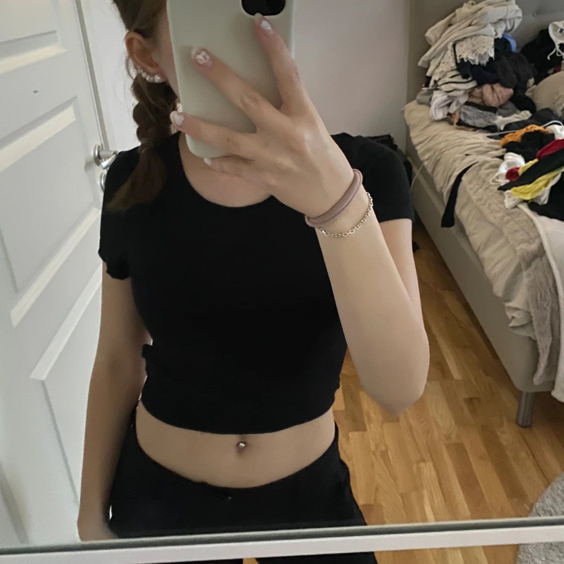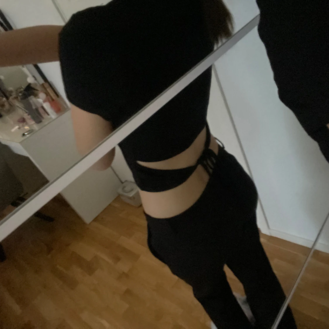 En svart t-shirt men en öppning bak på ryggen, säljer då jag har 2 likadana💗