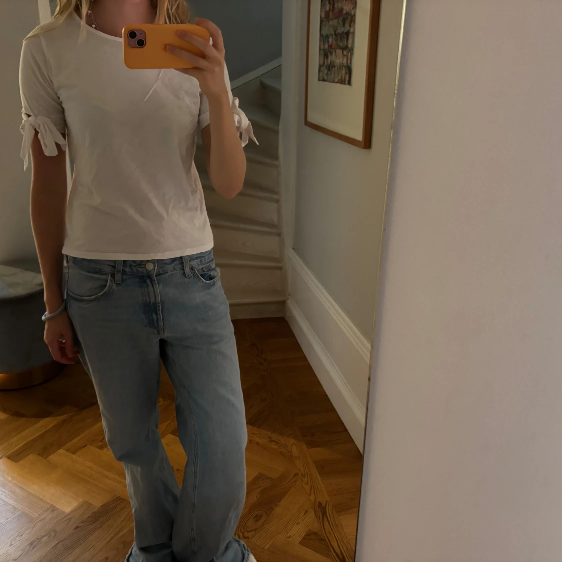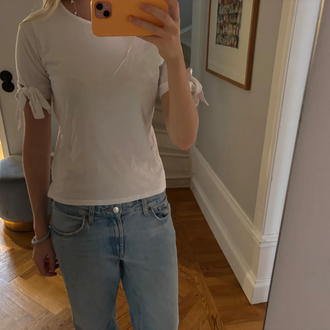 Så söt vit T-shirt med rosetter på ärmarna 🎀🎀