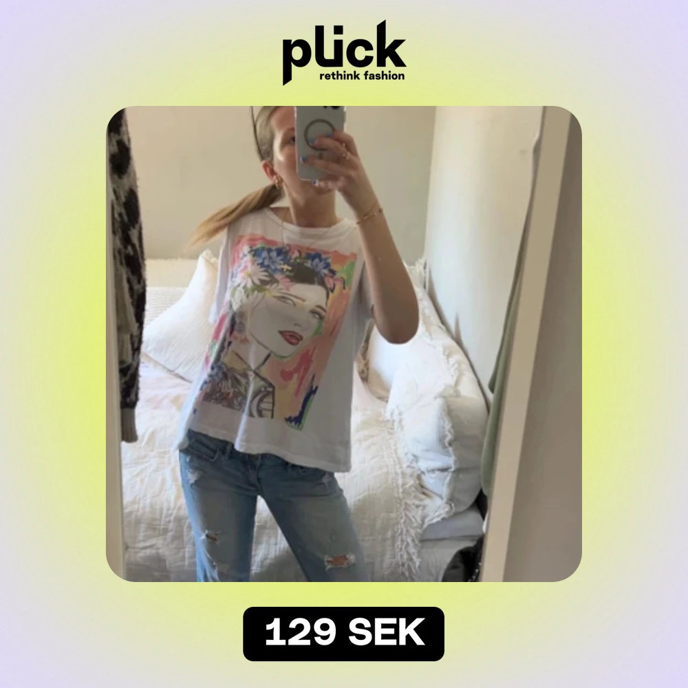 En T-shirt med sommarfärger. Köpt från zara, storlek M, då jag vanligtvis är S men tycker de snyggt med lite oversize. Använd ett par gånger.