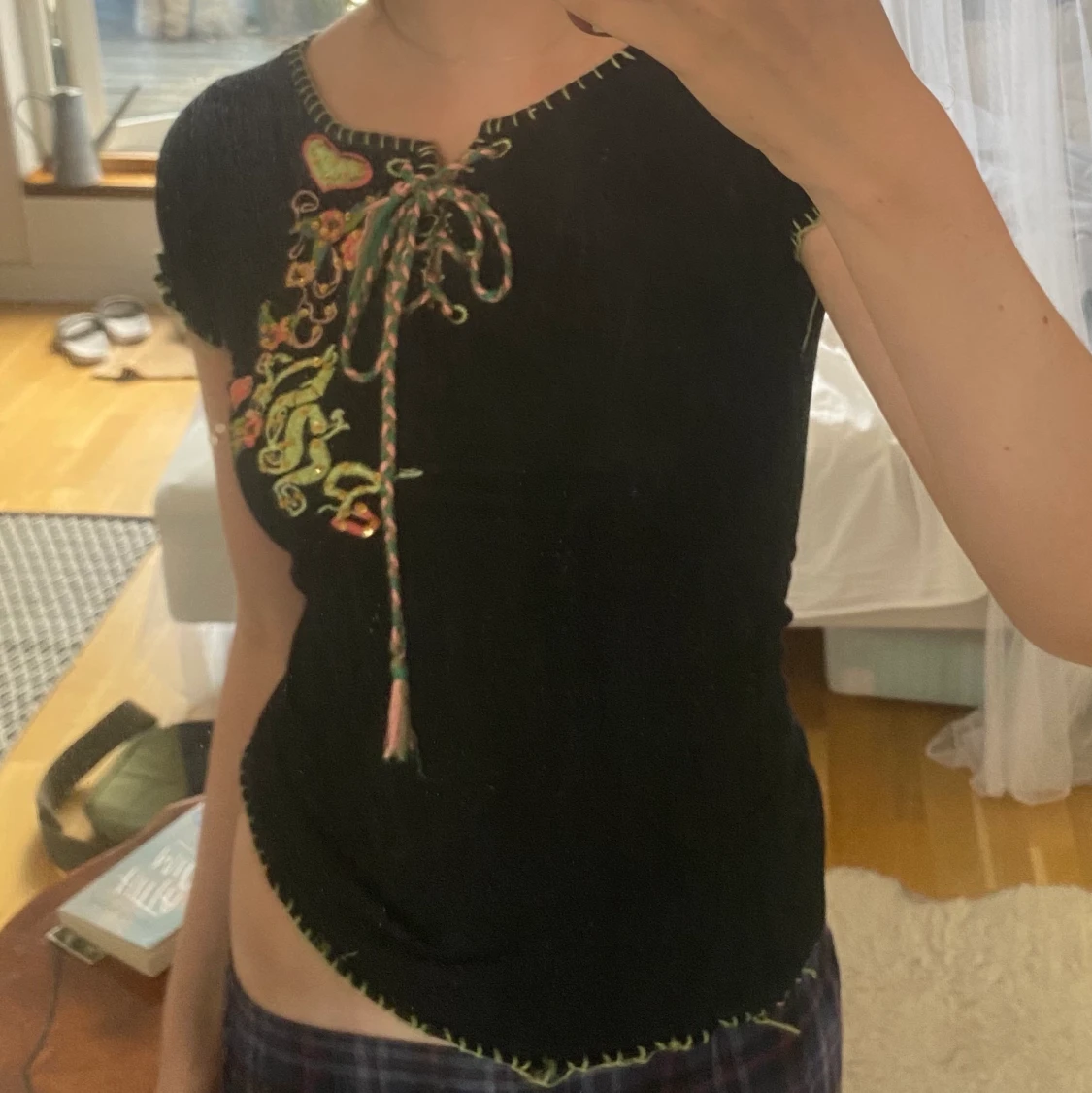 Jätte söt t-shirt med broderat tryck på framsidan och ryggen💖 väldigt stretchig