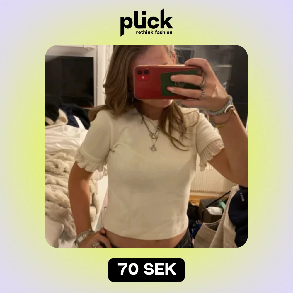 Fin T-shirt i tjockare material från zara med volanger på ärmarna. Väl använd. Tre små fläckar på fram men som knappt är märkbara.