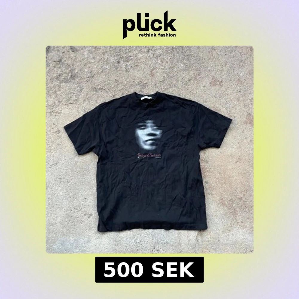 Svart t-shirt från Our Legacy med ett konstnärligt tryck av ett ansikte och texten 'Swing of Pendulum' på bröstet. PRISET GÅR ATT DISKUTERAS VID SNABB AFFÄR🙌