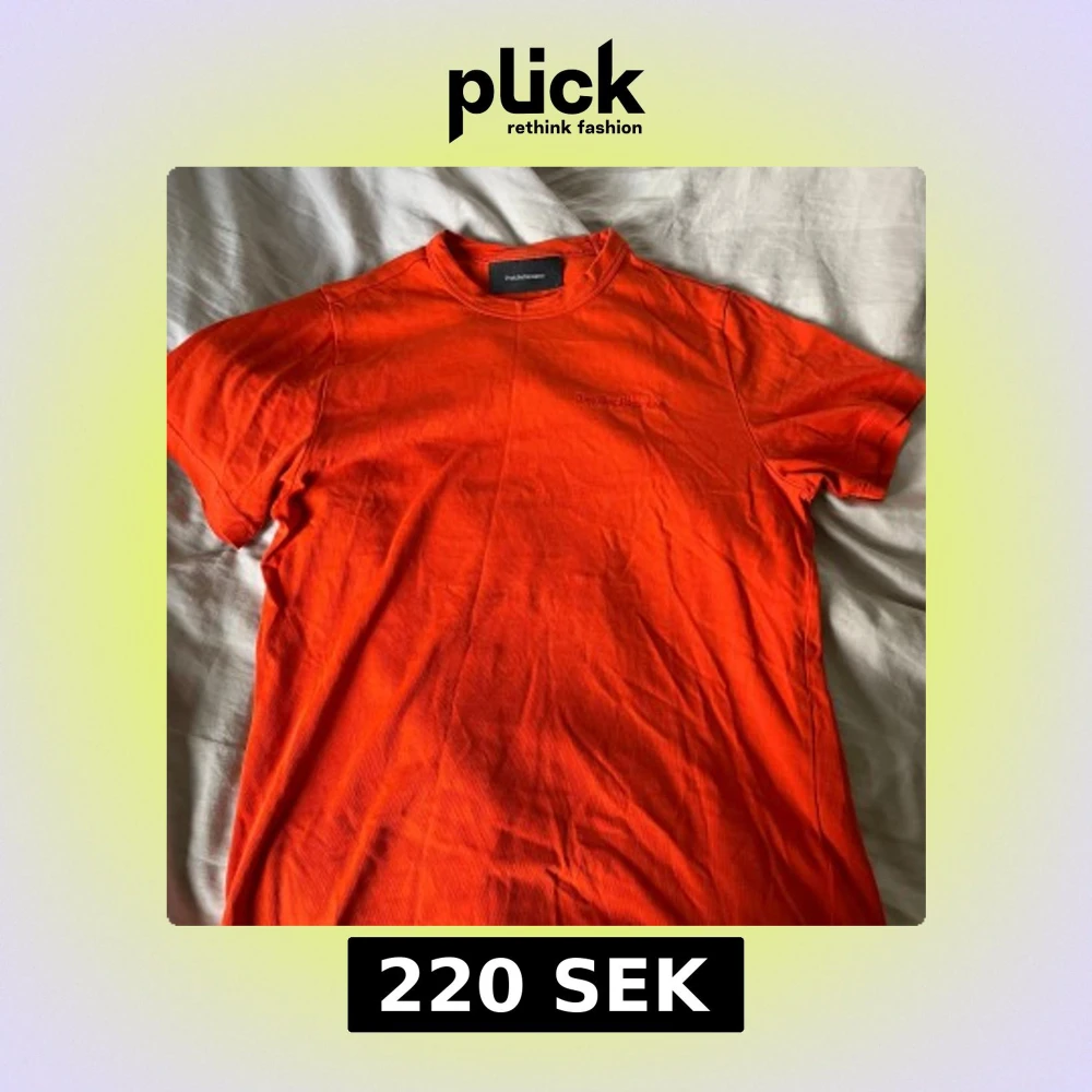 Snygg orange t-shirt från Peak Performance med broderad logga på bröstet. knappast använd så väldigt bra skick, pris kan diskuteras.