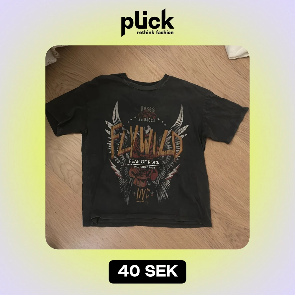 Cool svart t-shirt från Pull&Bear med ett rockigt tryck som säger 'Fly Wild' och 'Fear of Rock'. Perfekt för en avslappnad stil eller konsertkväll. Tillverkad i Turkiet, storlek M. Grymt snygg och bekväm! 🌹