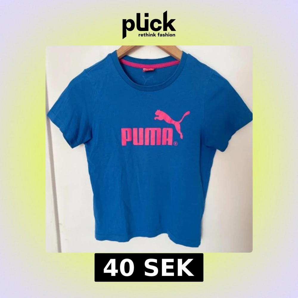 Blå t-shirt från Puma med stor rosa logga framtill och liten logga bak i nacken💙