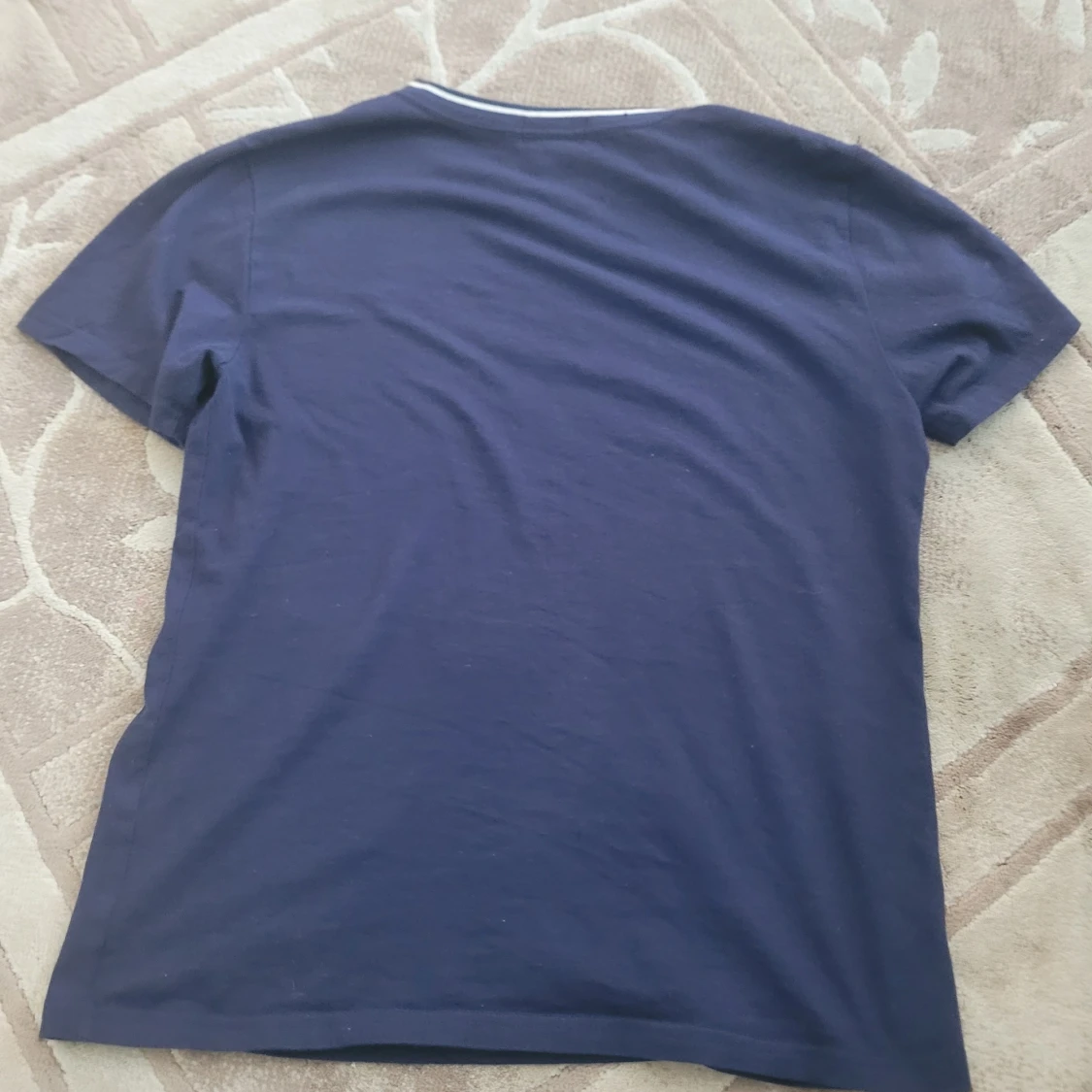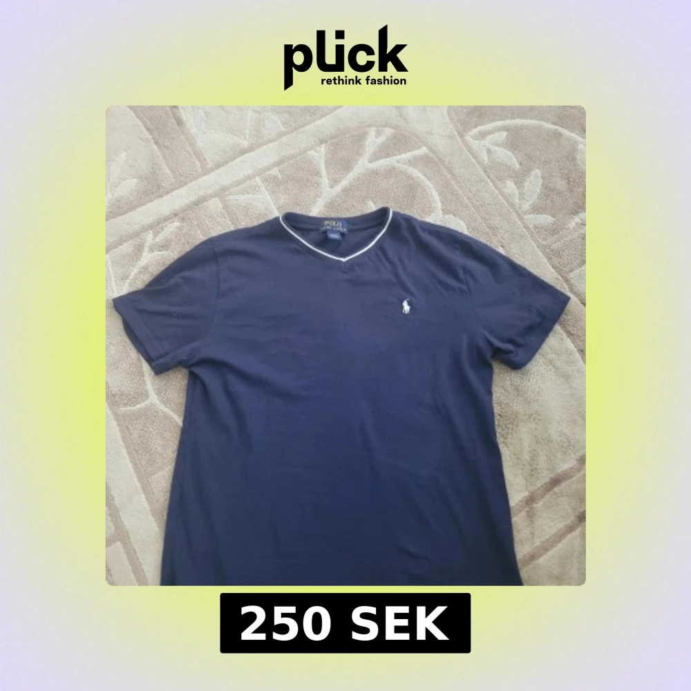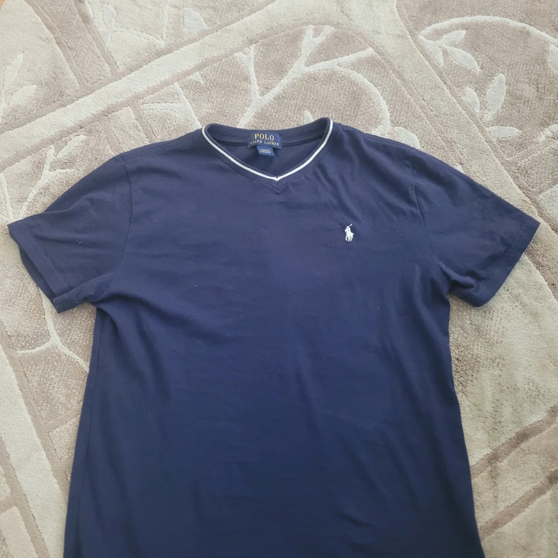Säljer en snygg mörkblå t-shirt från Ralph Lauren med v-ringning och en liten broderad logga på bröstet. T-shirten är tillverkad i 100% bomull och har korta ärmar. Använd bara ett par gånger. Jag kan frakta inom 24 timmar. Fråga gärna frågor.