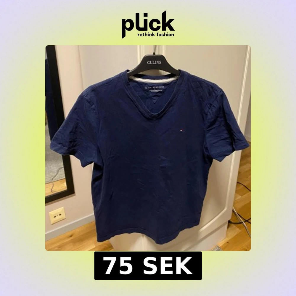 Snygg marinblå t-shirt från Tommy Hilfiger med liten broderad logga på bröstet. Klassisk v-ringning. Tillverkad i mjuk bomull som känns skön mot huden. Perfekt för en avslappnad och stilren look.