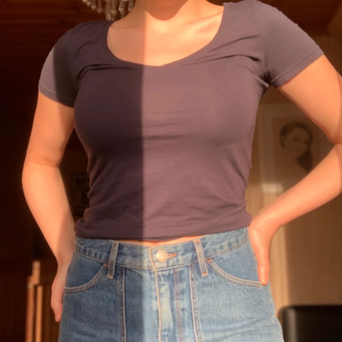Snygg svart T-shirt❣️🖤 Jag är en storlek S i vanliga fall men denna tröja är i storlek XS vilket gör att den sitter tightare⚡️Frakt 30kr men kan även mötas upp