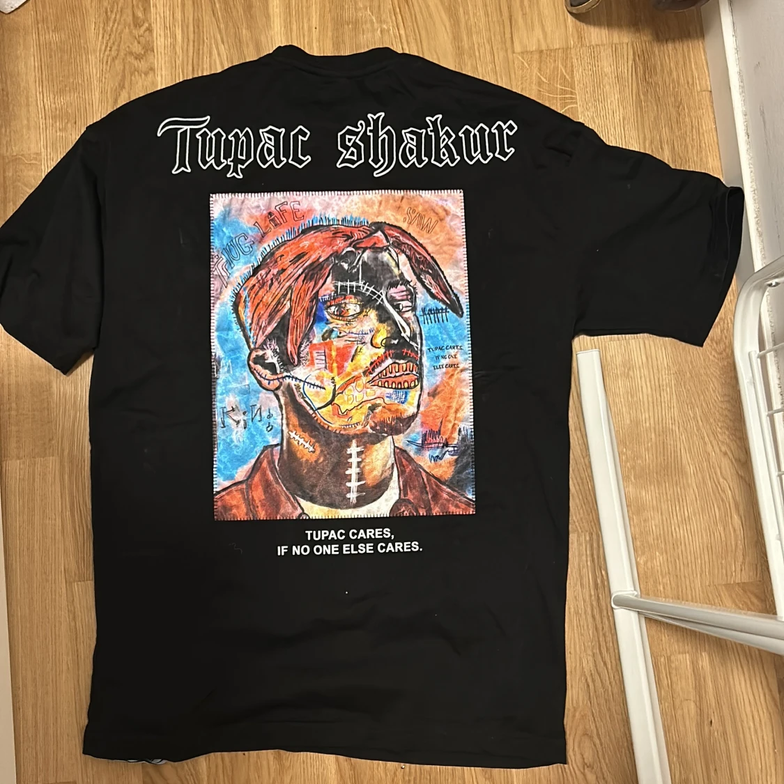 tshirt knappt använd. köpt i istanbul. materialet på bilden med tupac påminner lite om silke. bra kvalitet.köpt för cirka 600/700kr