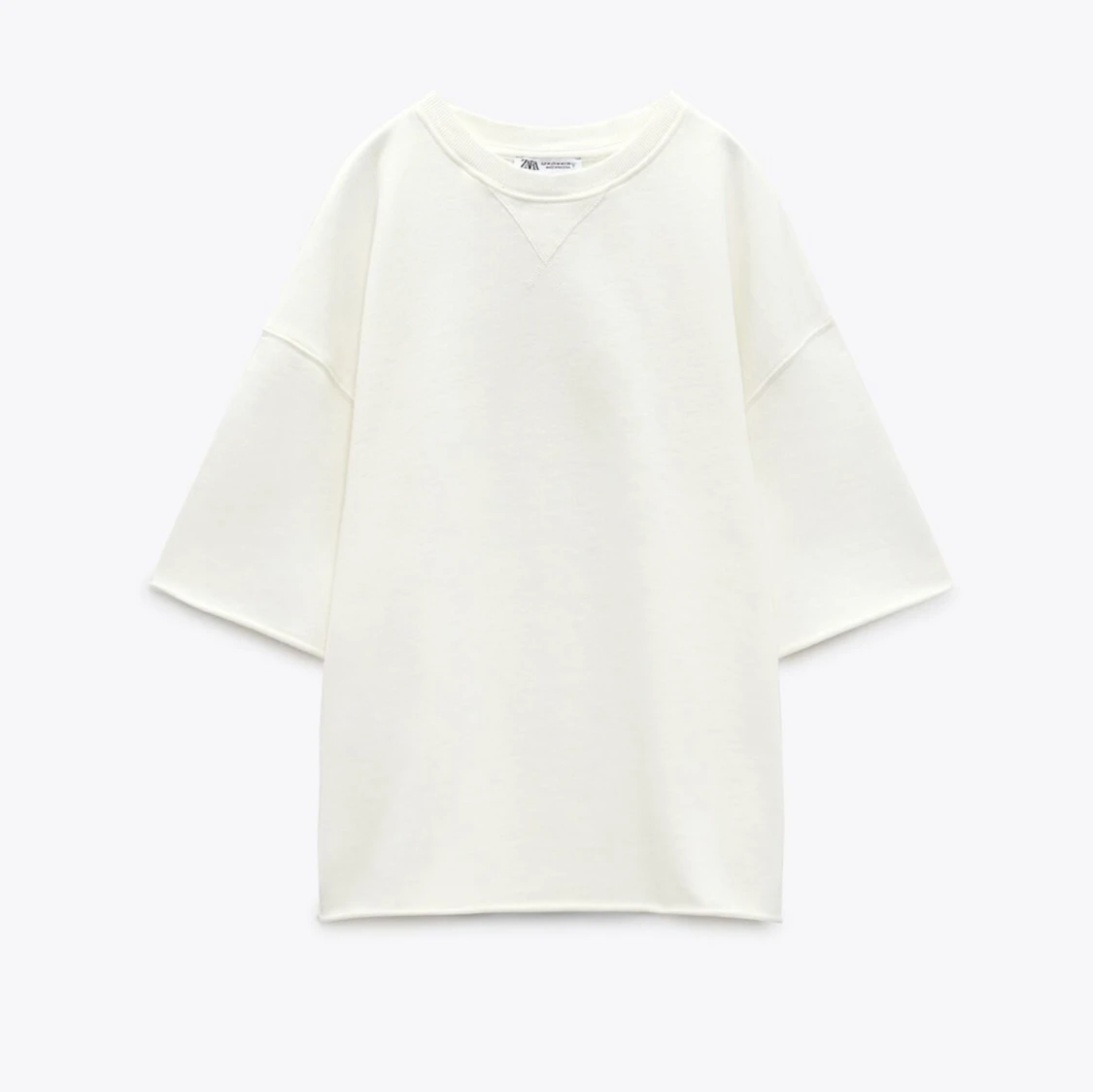 Slutsåld vit kortärmad sweatshirt från Zara. Oanvänd med prislappen kvar💗💗