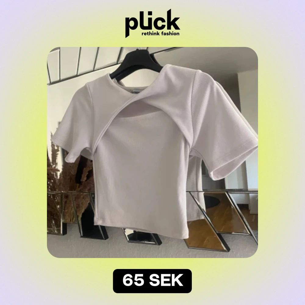 Snygg vit T-shirt med design liten öppning vid bröstet.