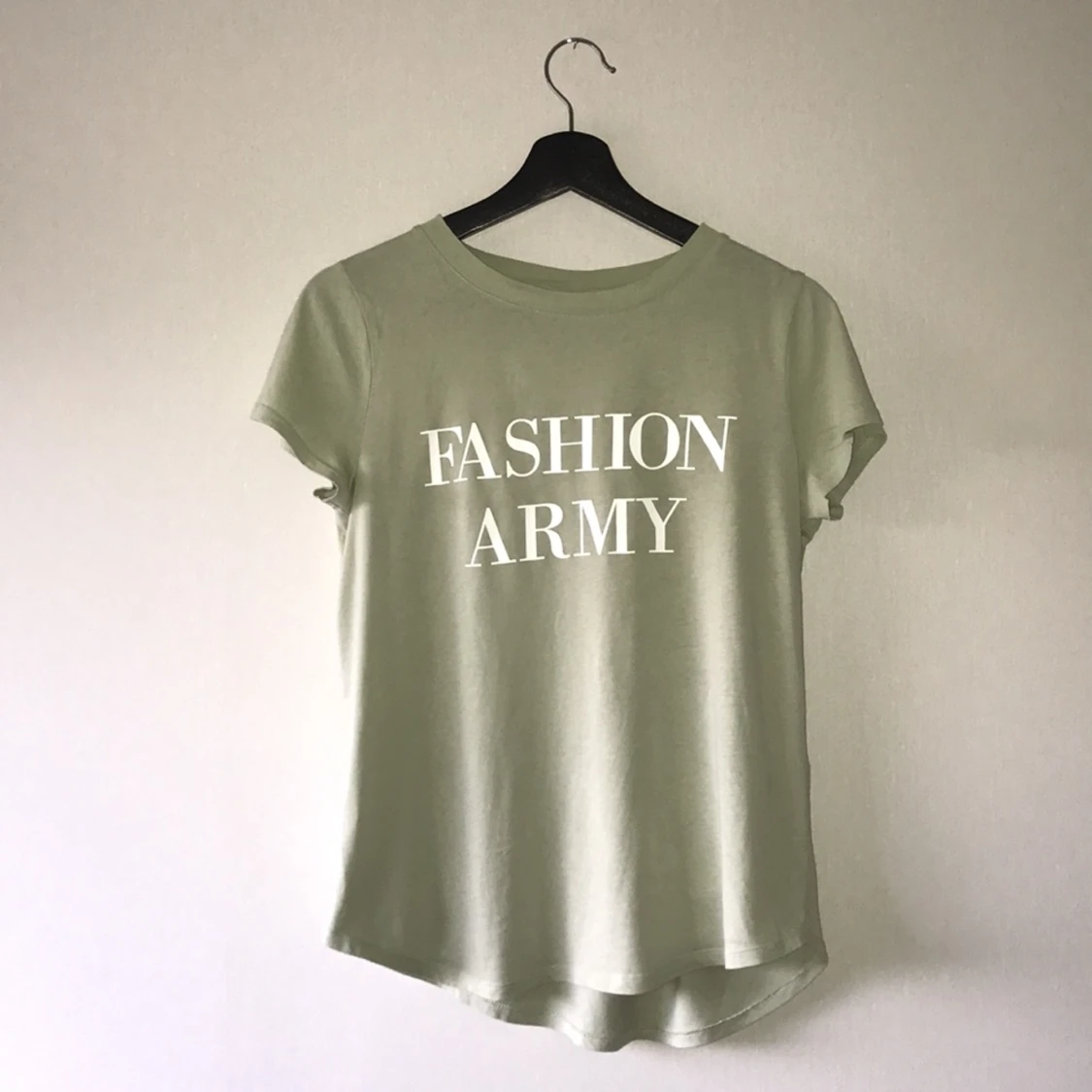 Ljus militär färgad t-shirt i mjukt material med ett vitt tryck på framsida bröst. 100% ekologisk bomull och aldrig använd. Köpt från ginatricot i storlek S, passformen är lös. Betalning sker via Swish och köparen står för frakten.