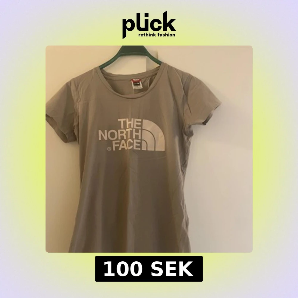 Säljer en snygg beige t-shirt från The North Face med deras ikoniska logga tryckt på bröstet och en mindre logga på ryggen. Perfekt för en avslappnad stil. T-shirten är kortärmad och gjord i ett mjukt material.