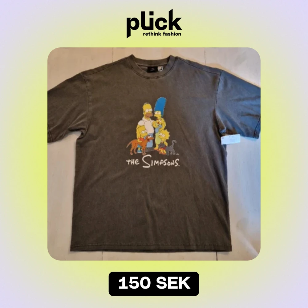 Mörkgrå t-shirt med tryck på framsidan "The Simpsons" från H&M, oanvänd. Tyget är inte vanligt t-shirt-tyg utan lite tjockare. Storleken är medium, oversized, så det är en STOR medium.
