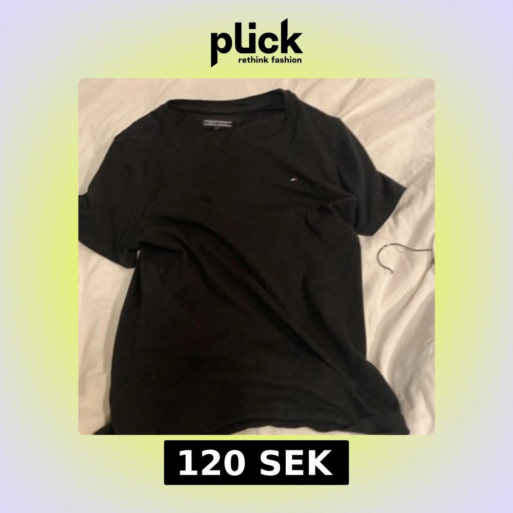 Snygg svart t-shirt från Tommy Hilfiger med en liten broderad logga på bröstet. Perfekt för en stilren och avslappnad look.