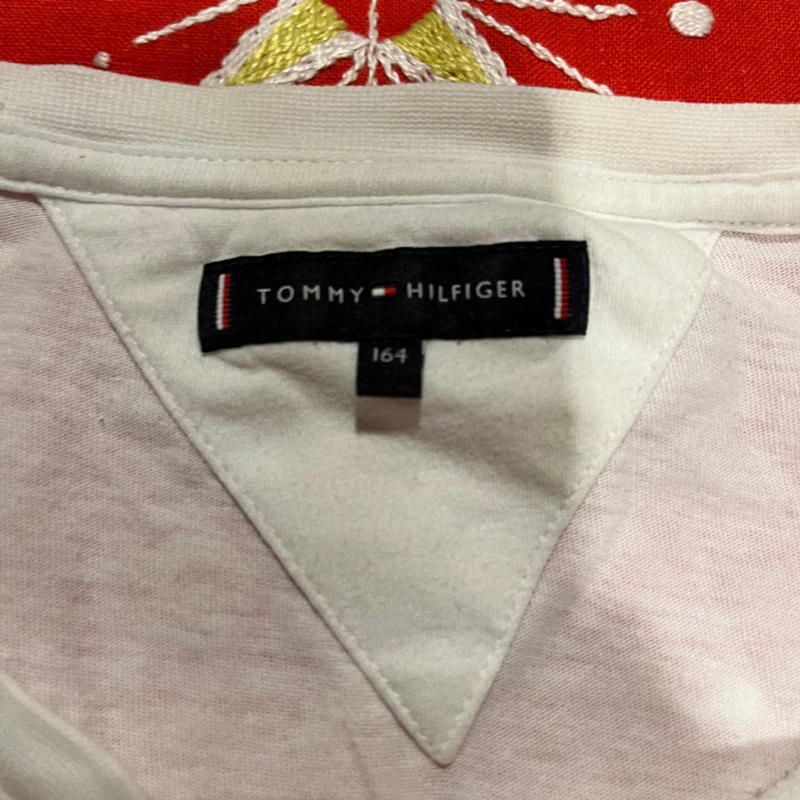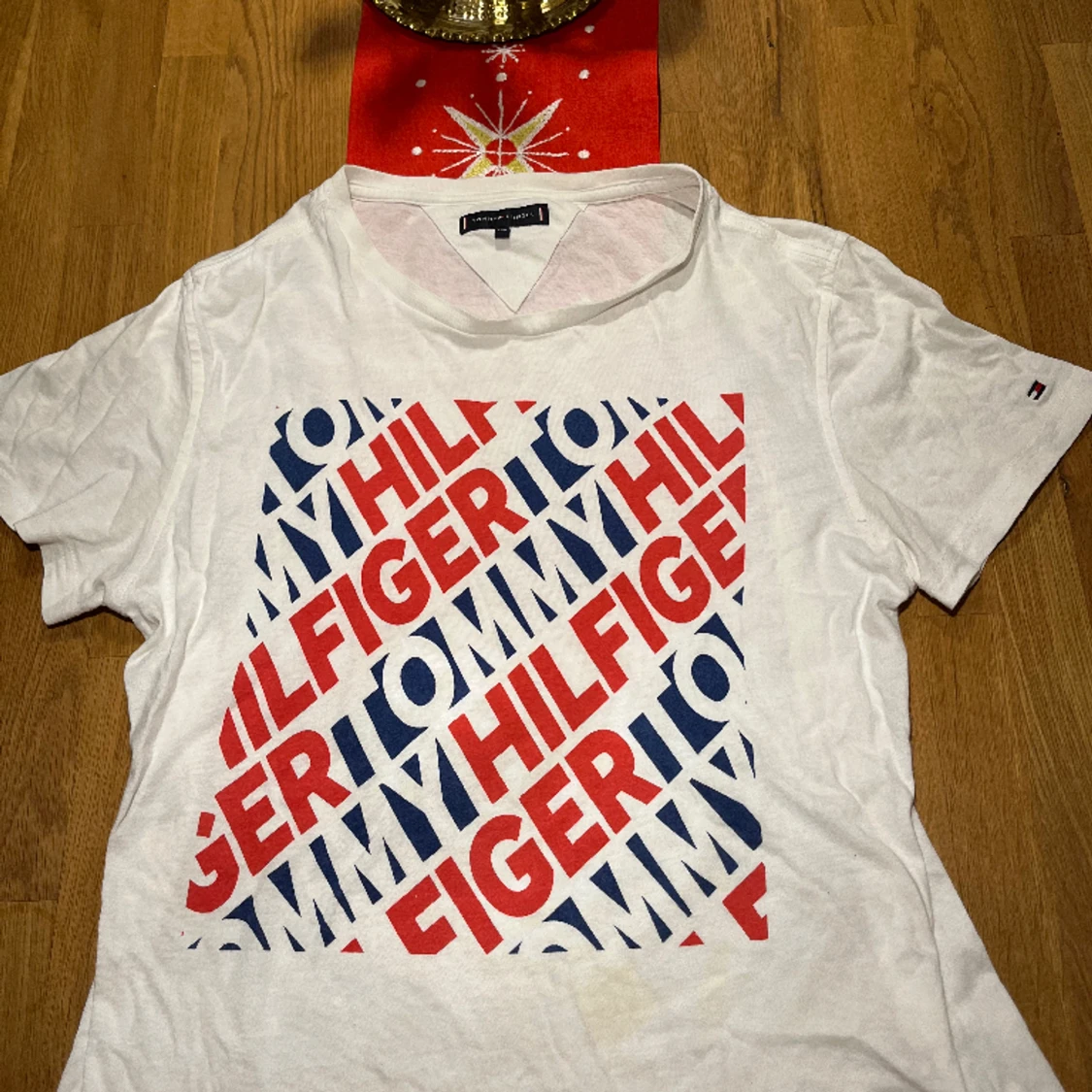 Kolla hit! Nu säljer vi en Tommy Hilfiger T-shirt! OBS: T-shortsen har svagt bruna fläckar precis under textens högra hörn, se på bild två.