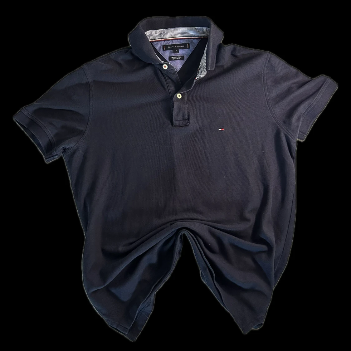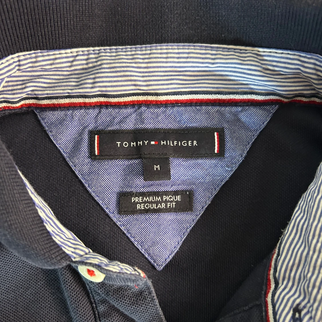 Klassisk mörkblå pikétröja från Tommy Hilfiger i bomull med regular fit. Tröjan har korta ärmar, krage med knappar och diskret logga på bröstet. Snygga randiga detaljer på insidan av kragen ger en extra touch. Perfekt för en clean och stilren look.