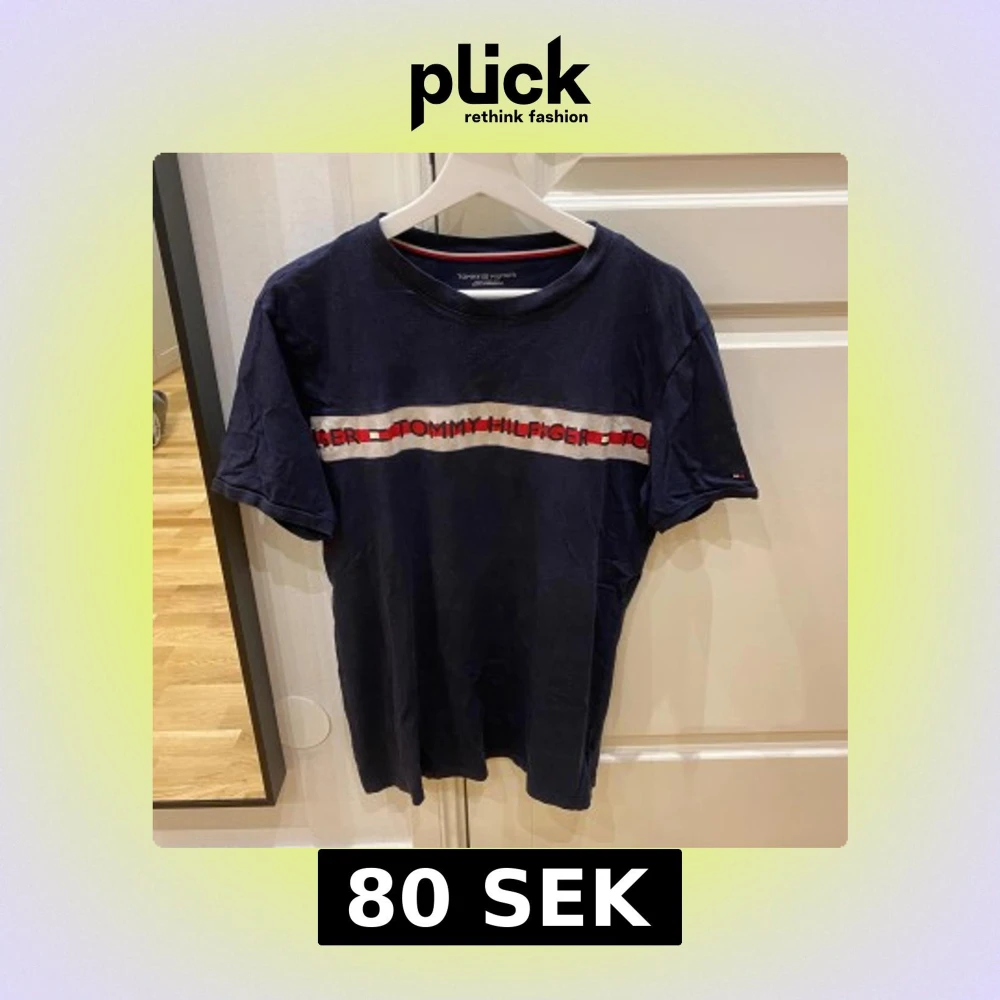 Snygg mörkblå t-shirt från Tommy Hilfiger med klassisk logga i rött och vitt över bröstet. T-shirten har rund hals och korta ärmar. Materialet är mjuk bomull som känns skönt mot huden. Perfekt för dig som gillar stilrena och ikoniska plagg.