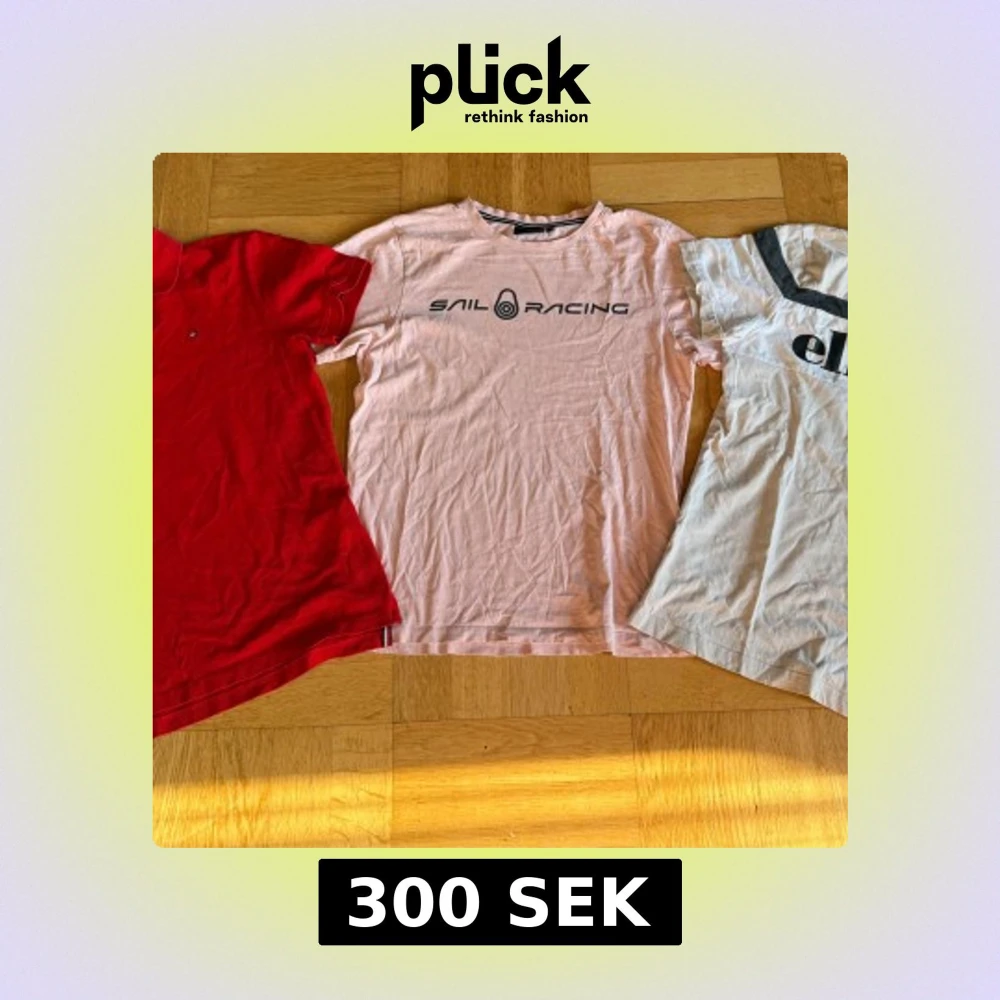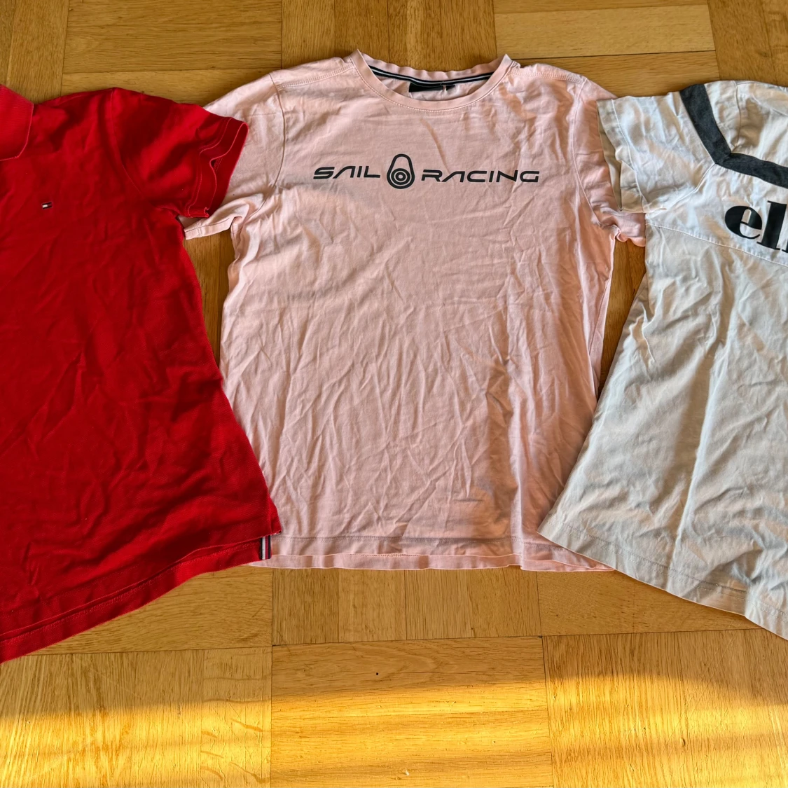 Märkes t-shirts, diverse märken i fint skick säljes. Alla ungefär i samma storlek även om de varierar på lapparna. Är ca 160 cl. Denna innehåller en Tommy Hilfiger pike, och en Sail racing t-shirt och en Ellesse.