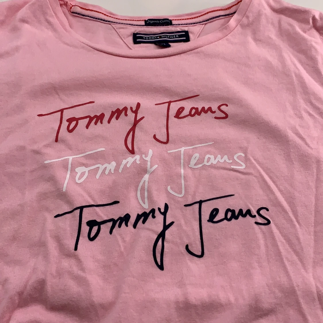 En rosa t-shirt från Tommy hilfiger💓 Strl 152 men passar också som xs💓använt Max 1-2 ggr, jätte fin Skriv privat om du är intresserad 💓