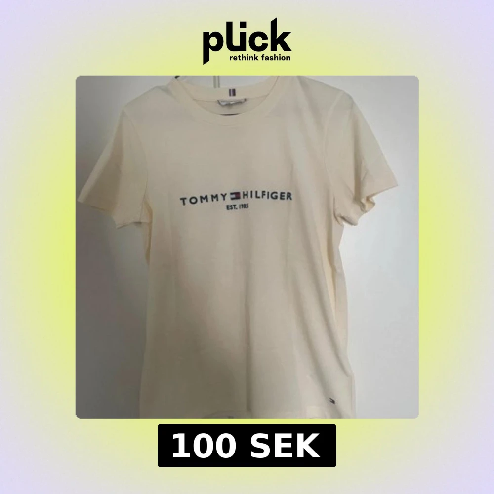 Snygg beige t-shirt från Tommy Hilfiger i storlek XS. Klassisk rund hals och korta ärmar. T-shirten har logotypen tryckt framtill och en liten Hilfiger-flagga vid nederkanten. Mjuk bomullskvalitet som känns skön mot huden.
