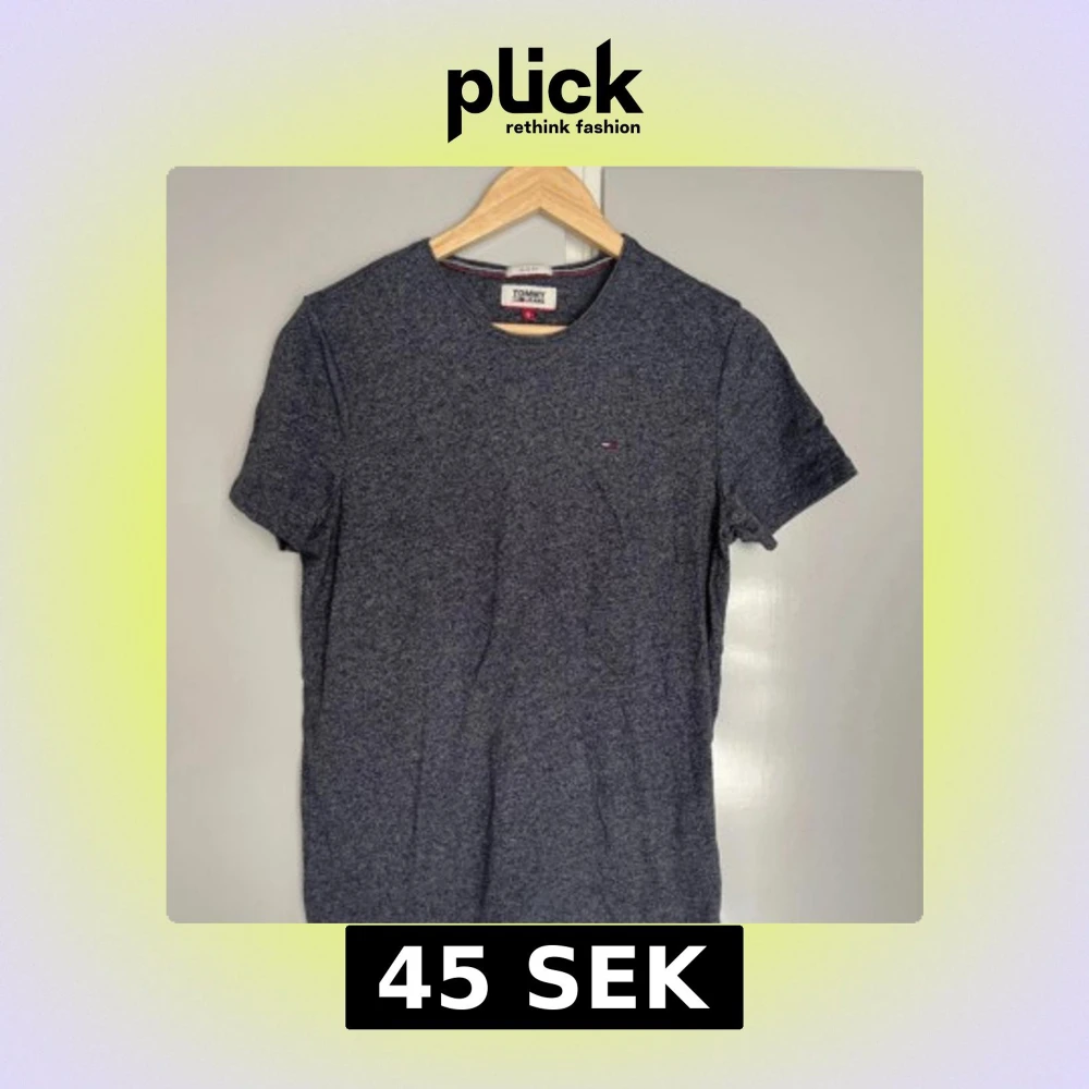 Säljer en stilren grå melerad t-shirt från Tommy Jeans i slim fit. T-shirten är kortärmad och har en liten broderad logga på bröstet. Storlek Small