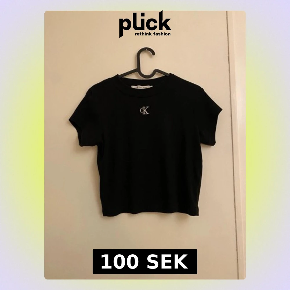 Svart t-shirt från Calvin Klein med klassisk rund hals och korta ärmar. Framtill finns en liten vit CK-logga broderad på bröstet. Modellen är croppad och har en stilren, enkel design som funkar till många olika looks.