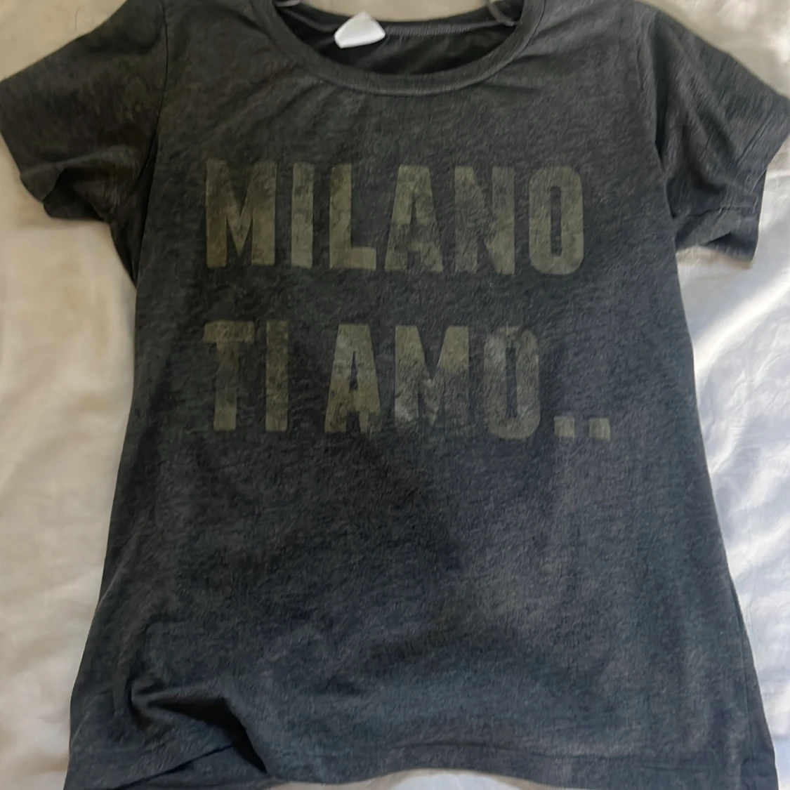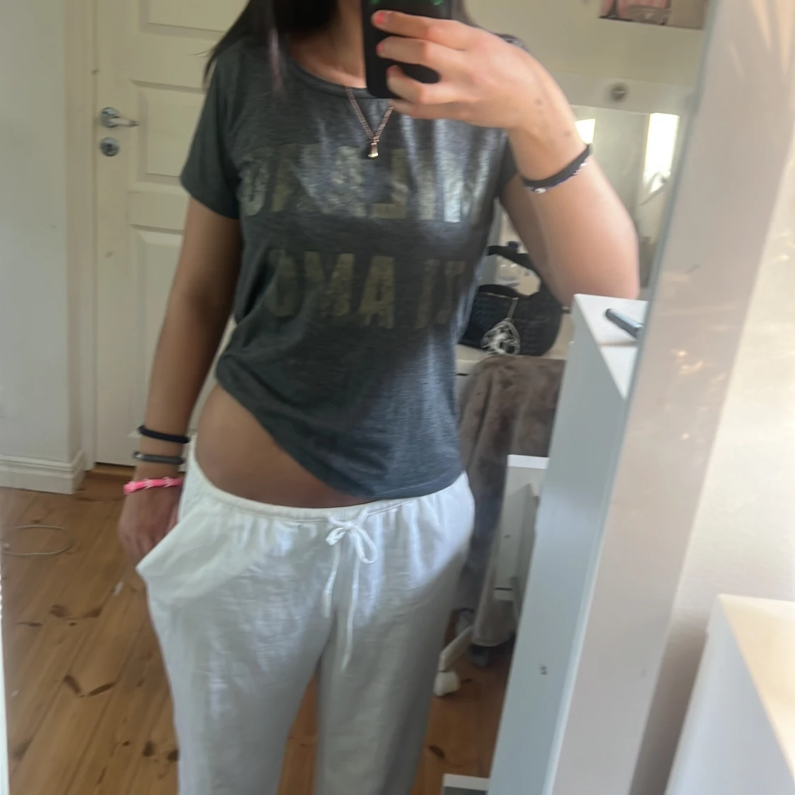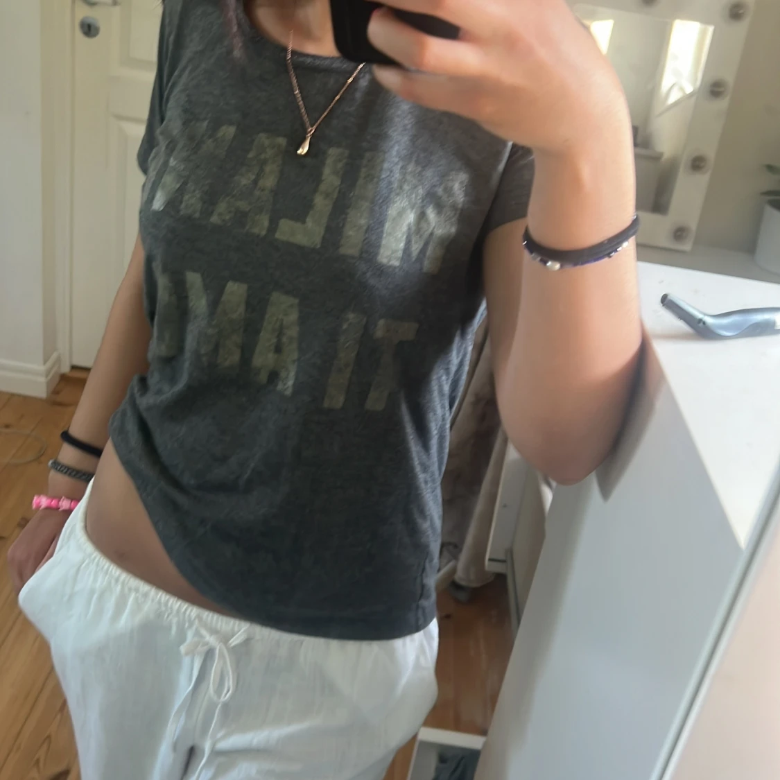 Mörkgrå t shirt med tryck/text. Jätteskön men kommer tyvärr inte till användning