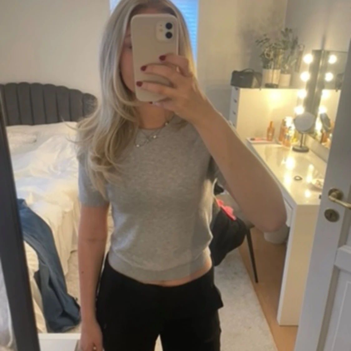 Finstickad grå t-shirt, Gina Tricot
