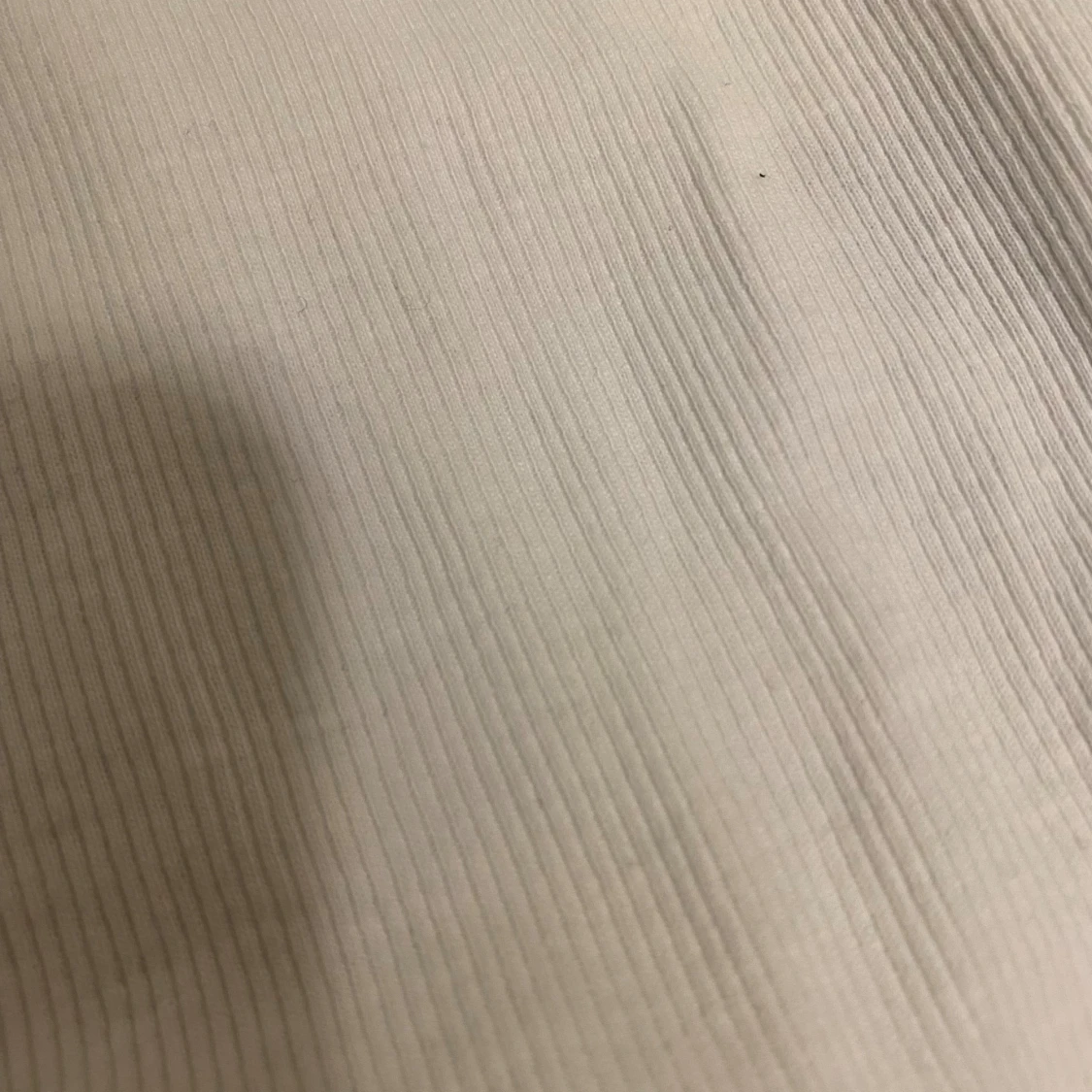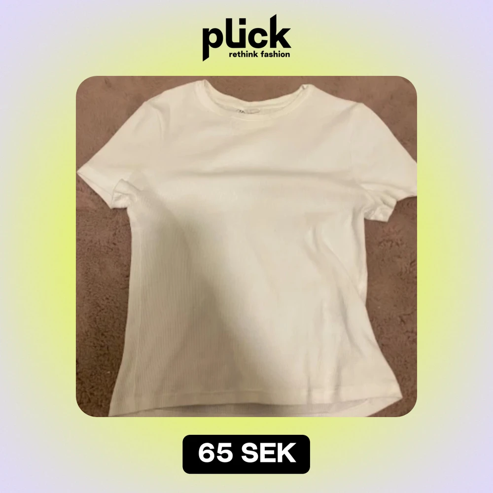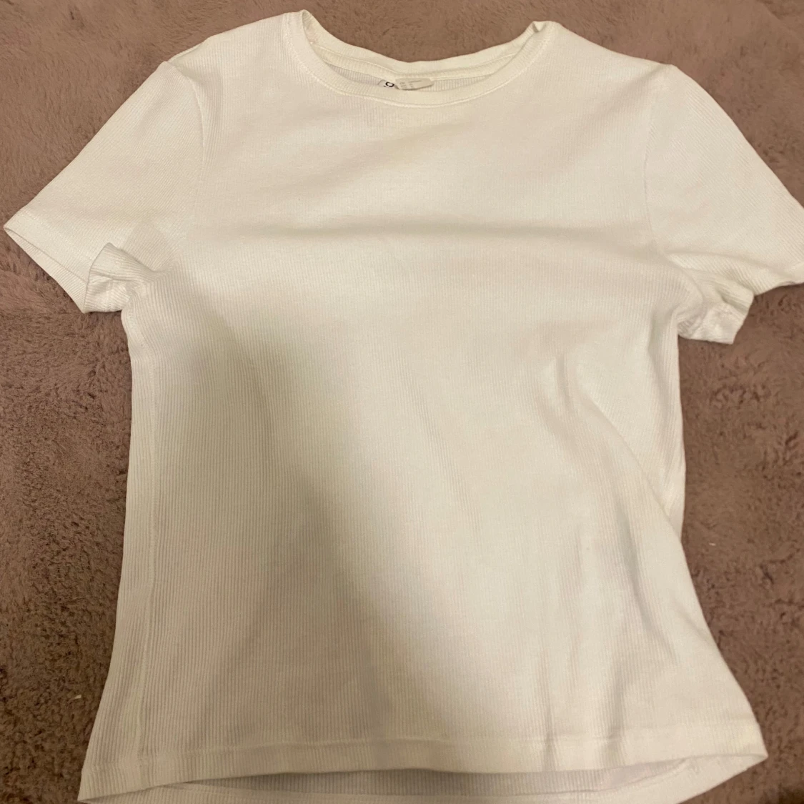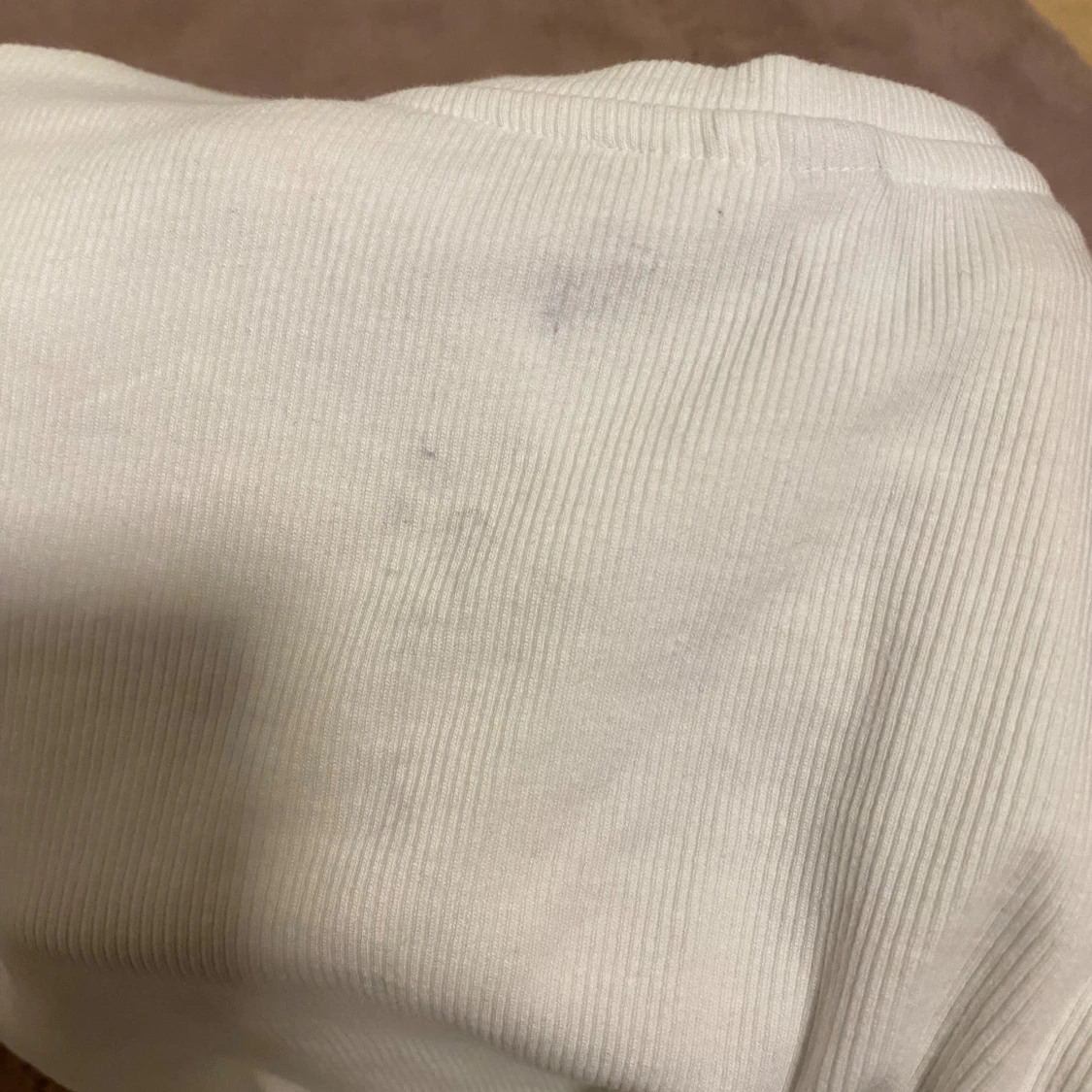 Ribbad, vit T-shirt från hm. Den har en fläck i bak som fanns när den köptes men jag märkte det senare.