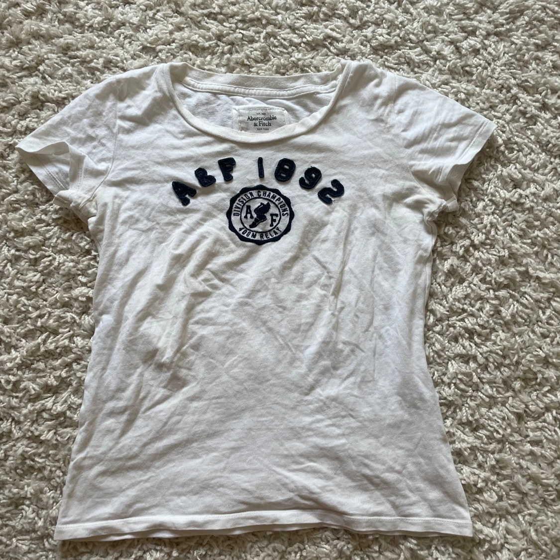Vit t-shirt med blått trycka från Abercrombie & fitch, i ett väldigt skönt o mjukt material💞💞