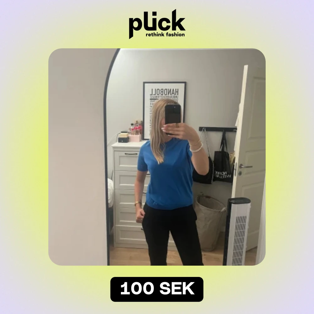 Säljer denna fina blå fin stickad eller hur man ska beskriva den toppen/ thiserten. Den är i mycket fint skick och använd en gång. Säljer för 100 kr