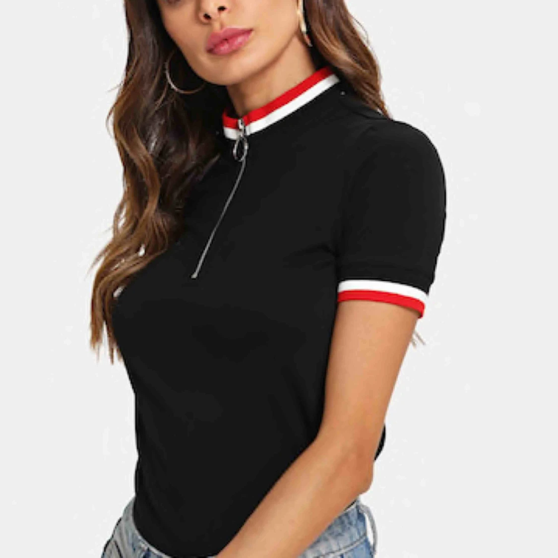Svart Moncler pikétröja med logga - Svart pikétröja från Moncler med klassisk krage och knäppning framtill. Röd, vit och blå rand på krage och ärmslut ger en sportig vibe. Broderad Moncler-logga på bröstet. Tillverkad i bomull för skön känsla och snygg passform.