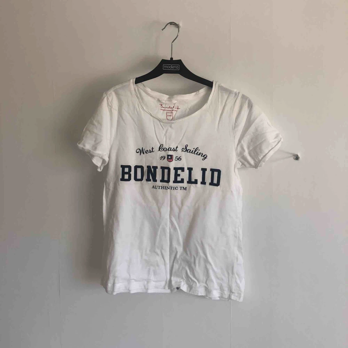 Vit t-shirt från Bondelid. (Ursäkta skrynklorna, ska självklart strykas innan den skickas). Köparen står för frakt ☺️