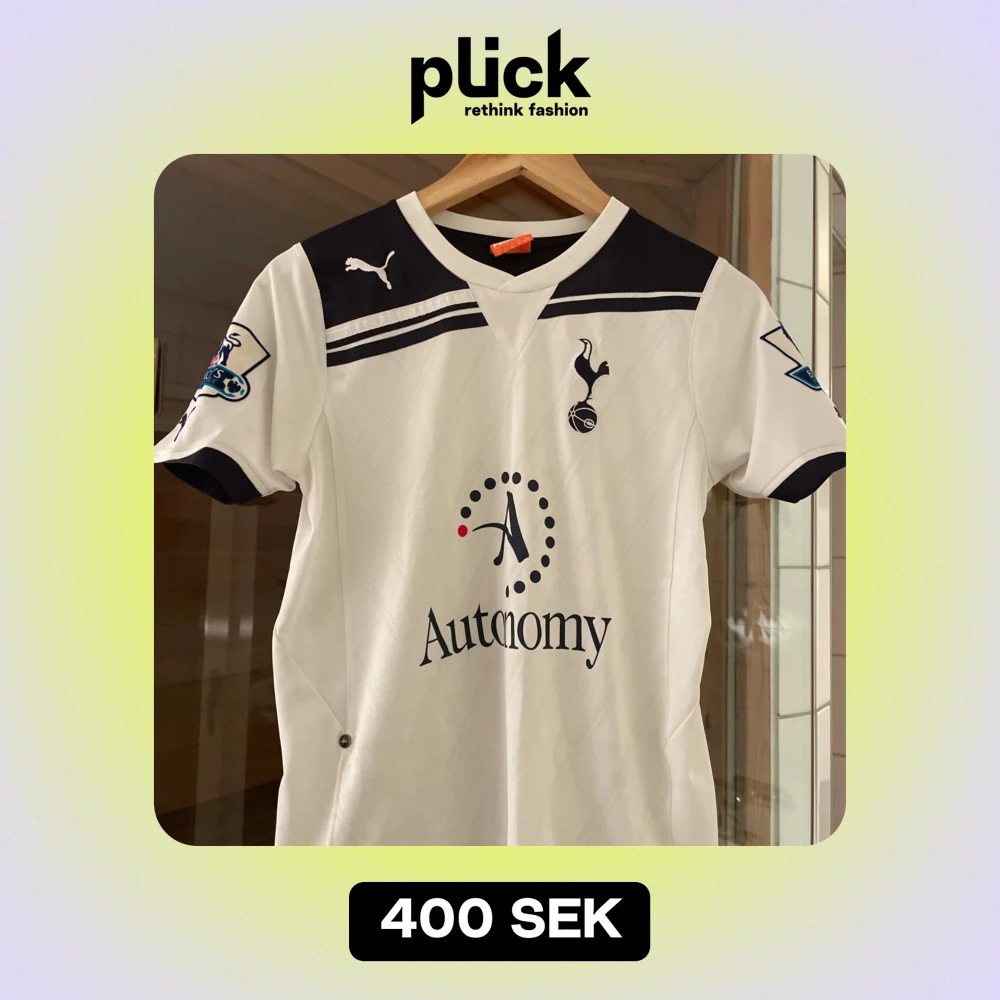 Säljer en Tottenham fotbollströja med korta ärmar och snygga svarta detaljer. Tröjan har 'Bale 3' på baksidan.