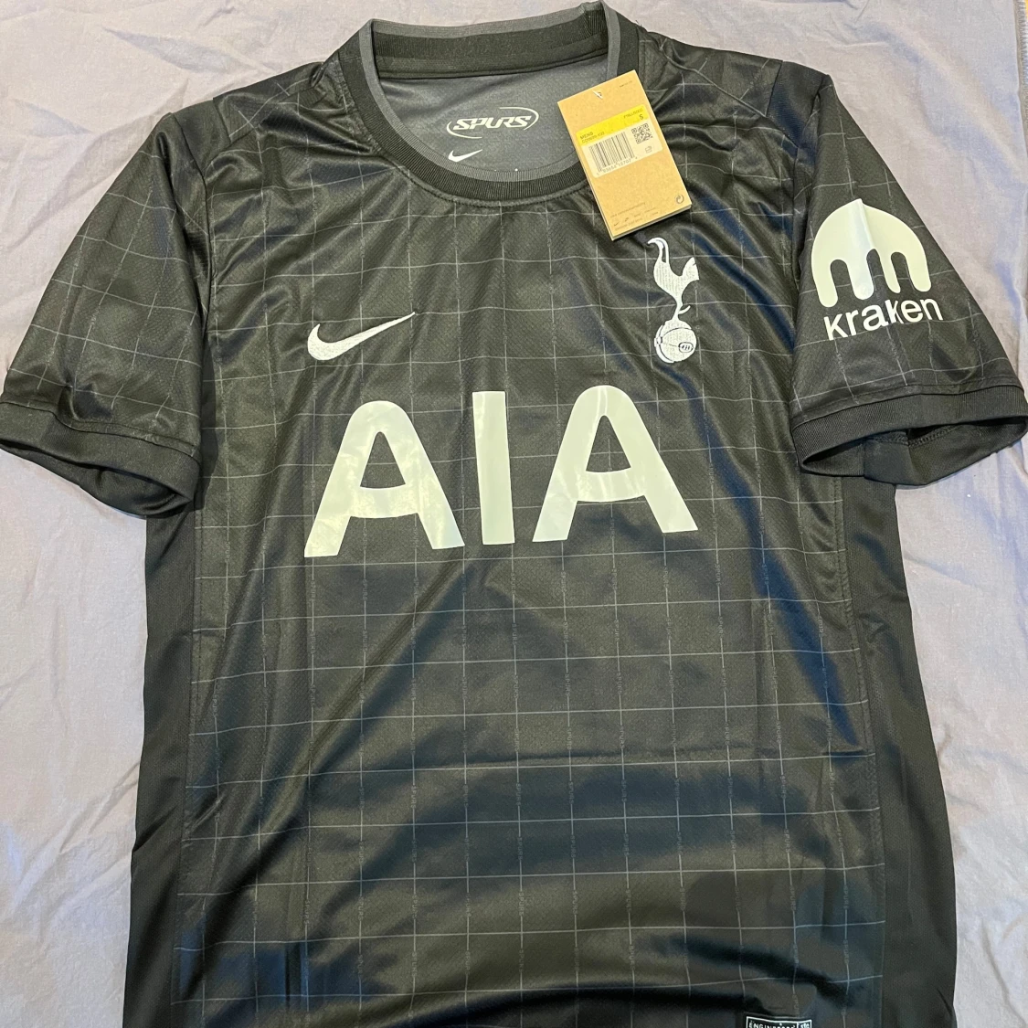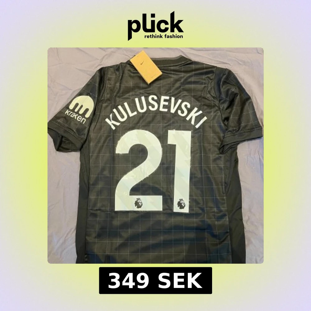 Snygg svart Tottenham Hotspur fotbollströja från Nike med Kulusevski och nummer 21 på ryggen. Tröjan har korta ärmar, diskret rutmönster, AIA som sponsor på bröstet och klubbmärke på vänster sida. Tillverkad i lätt och ventilerande material.