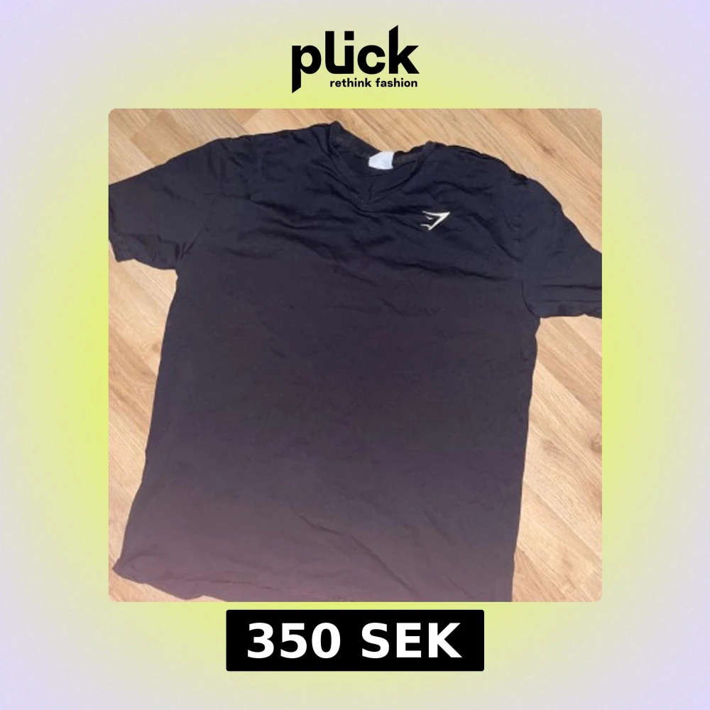 Svart t-shirt från Gymshark i storlek S med v-ringad hals och diskret logga på bröstet. Klassisk kortärmad modell i mjukt bomullsmaterial, perfekt för dig som gillar stilren och sportig look.