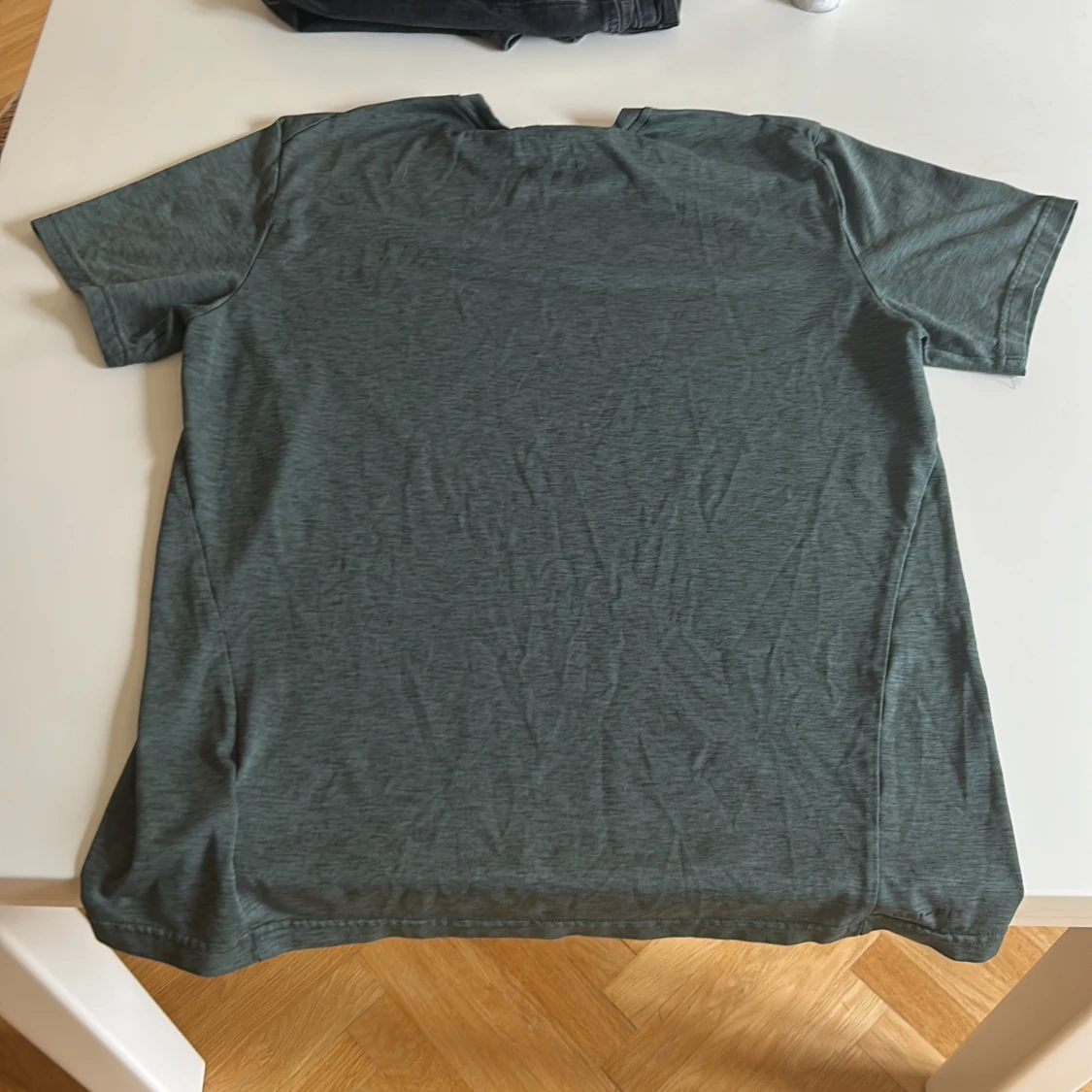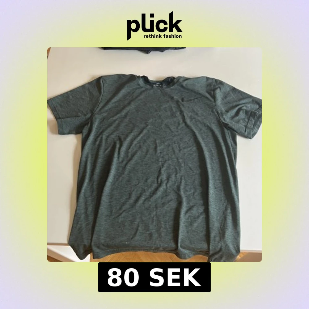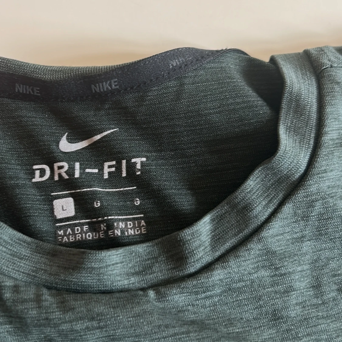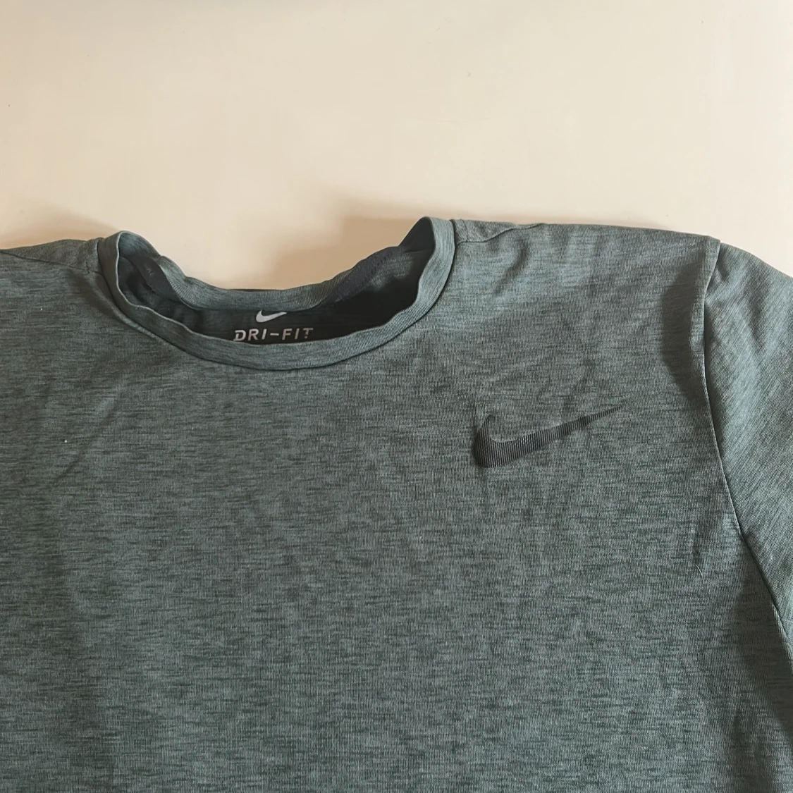 Nike Dri-Fit t-shirt i snygg grön med diskret melerat mönster. Klassisk rund hals och korta ärmar. Perfekt för träning med lätt och snabbtorkande material. Nike loggade bröstet.