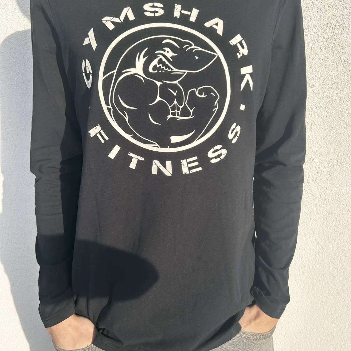 Gymshark träning tröja med långa ärmar. I Färgen svart/mörkblå och storleken L. Skicket är super fint och tröjan passar super till träning eller andra tillfällen.