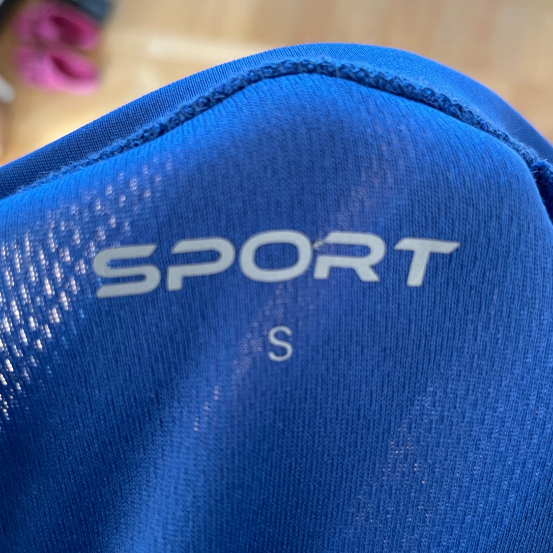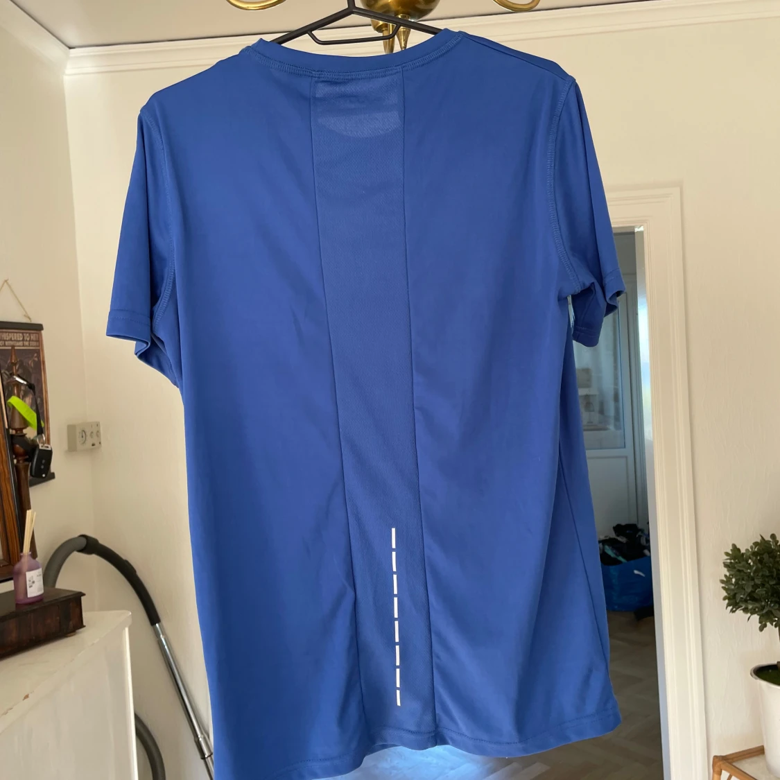 Blå t-shirt från Sport med kort ärm och rund hals. Tillverkad i ett lätt och stretchigt polyestermaterial, perfekt för träning. Diskret logga framtill och reflekterande detalj på ryggen. Enkel och clean design som passar dig som gillar sportiga vibes. Stlk S. Använd 1 gång!