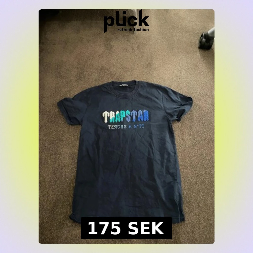 Snygg mörkblå t-shirt från Trapstar med färgglatt broderat tryck på bröstet i vitt, turkos och blått. Klassisk rund hals och korta ärmar. Materialet är mjuk bomull som känns skönt mot huden. Perfekt för dig som gillar streetwear och vill sticka ut.