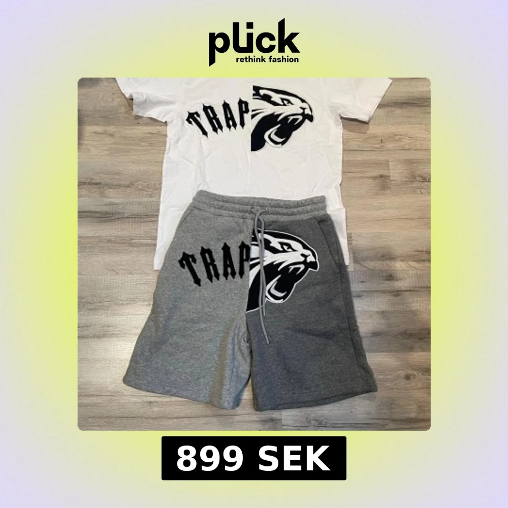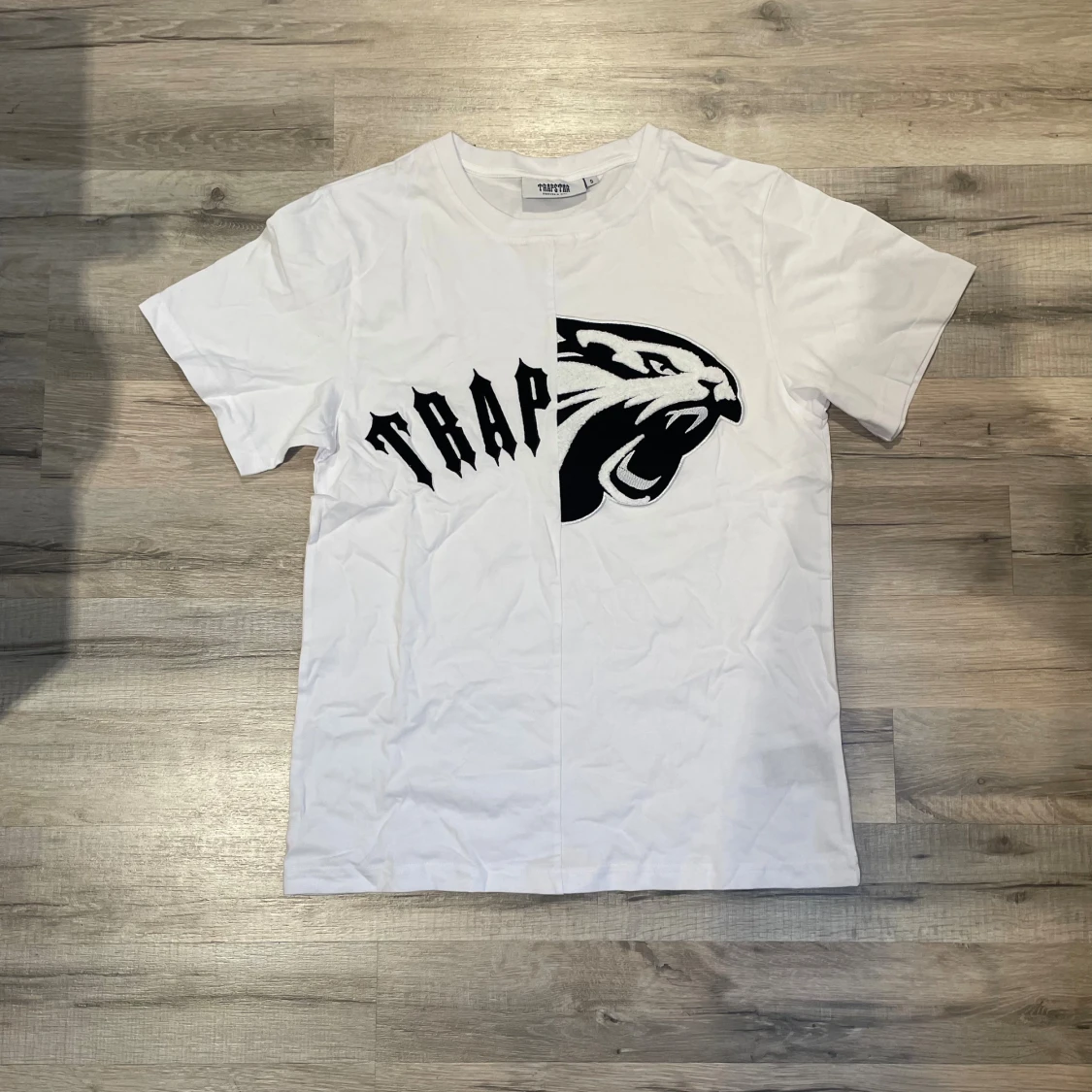 Vit t-shirt från Trapstar med stor svart pantergrafik och texten 'TRAP' i fet stil över bröstet. T-shirten har rund hals och korta ärmar, tillverkad i mjuk bomull. Perfekt för dig som gillar streetwear och vill sticka ut med en unik design.
