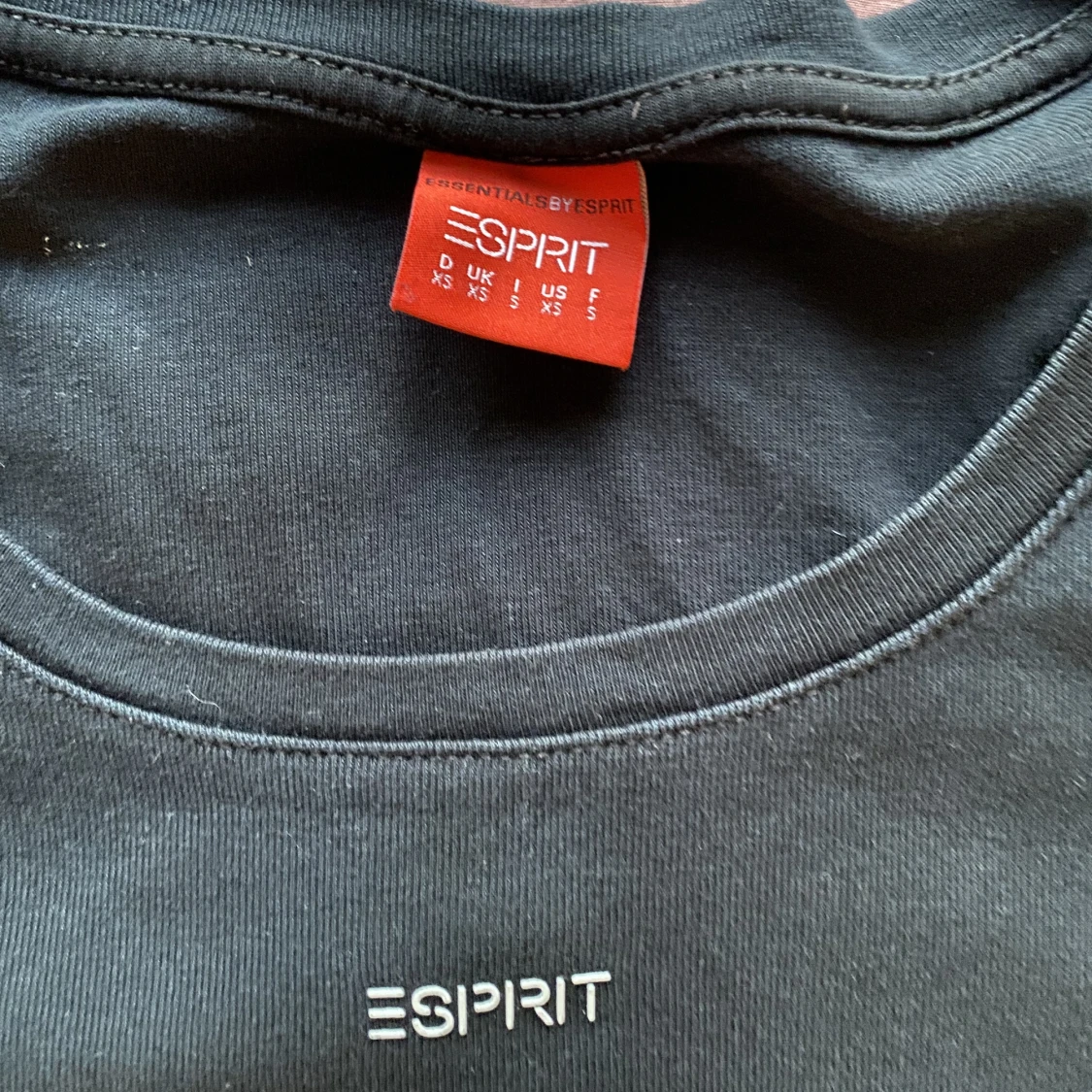 Supersnygg t-shirt från esprit i jättebra skick💙 ser ut som svart på bilderna men den är väldigt mörkblå. Storlek XS/S men passar mig perfekt och som brukar ha M