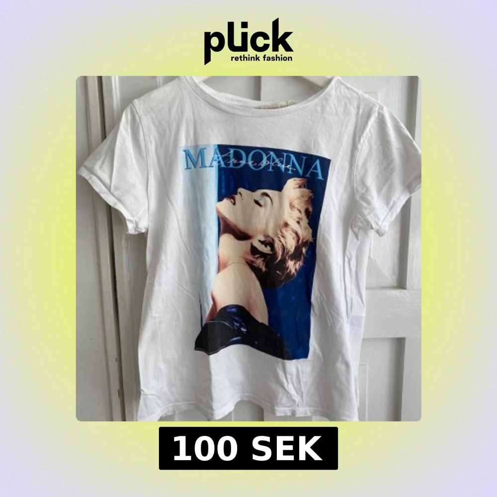 Vit t-shirt med stort färgglatt tryck av Madonna på framsidan. Från H&M 🩵
