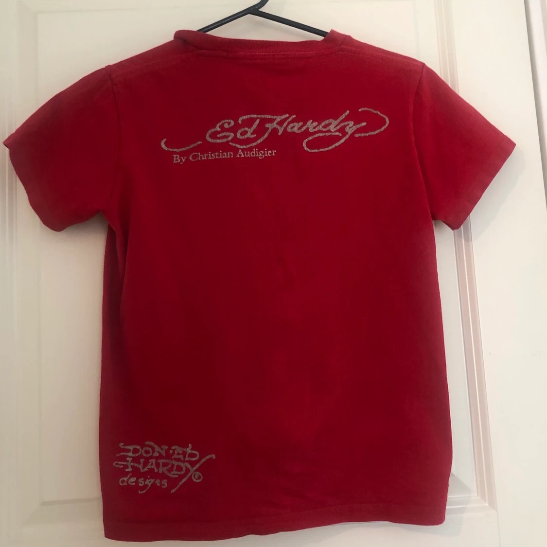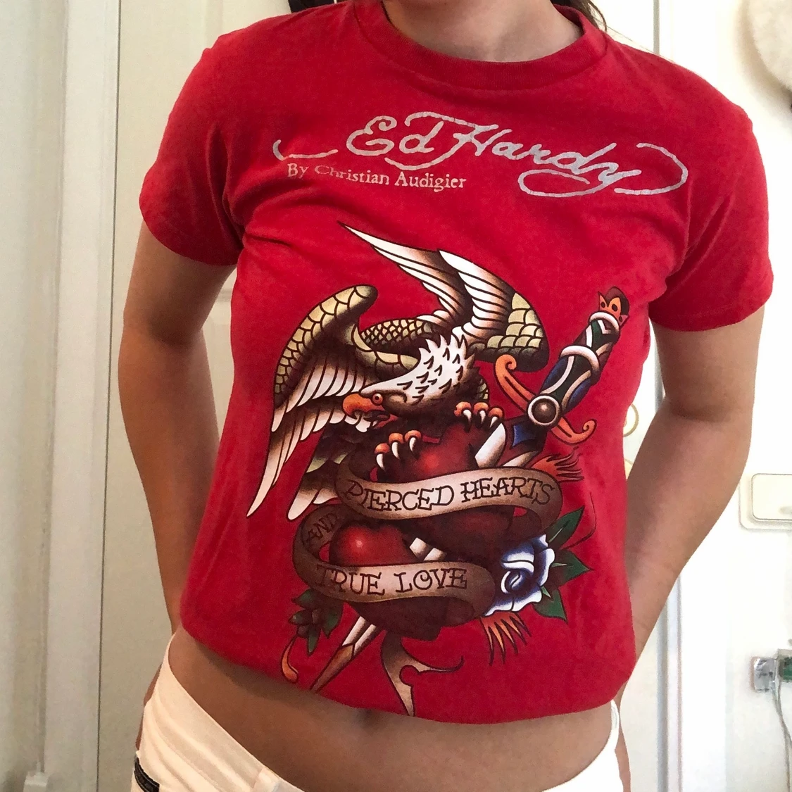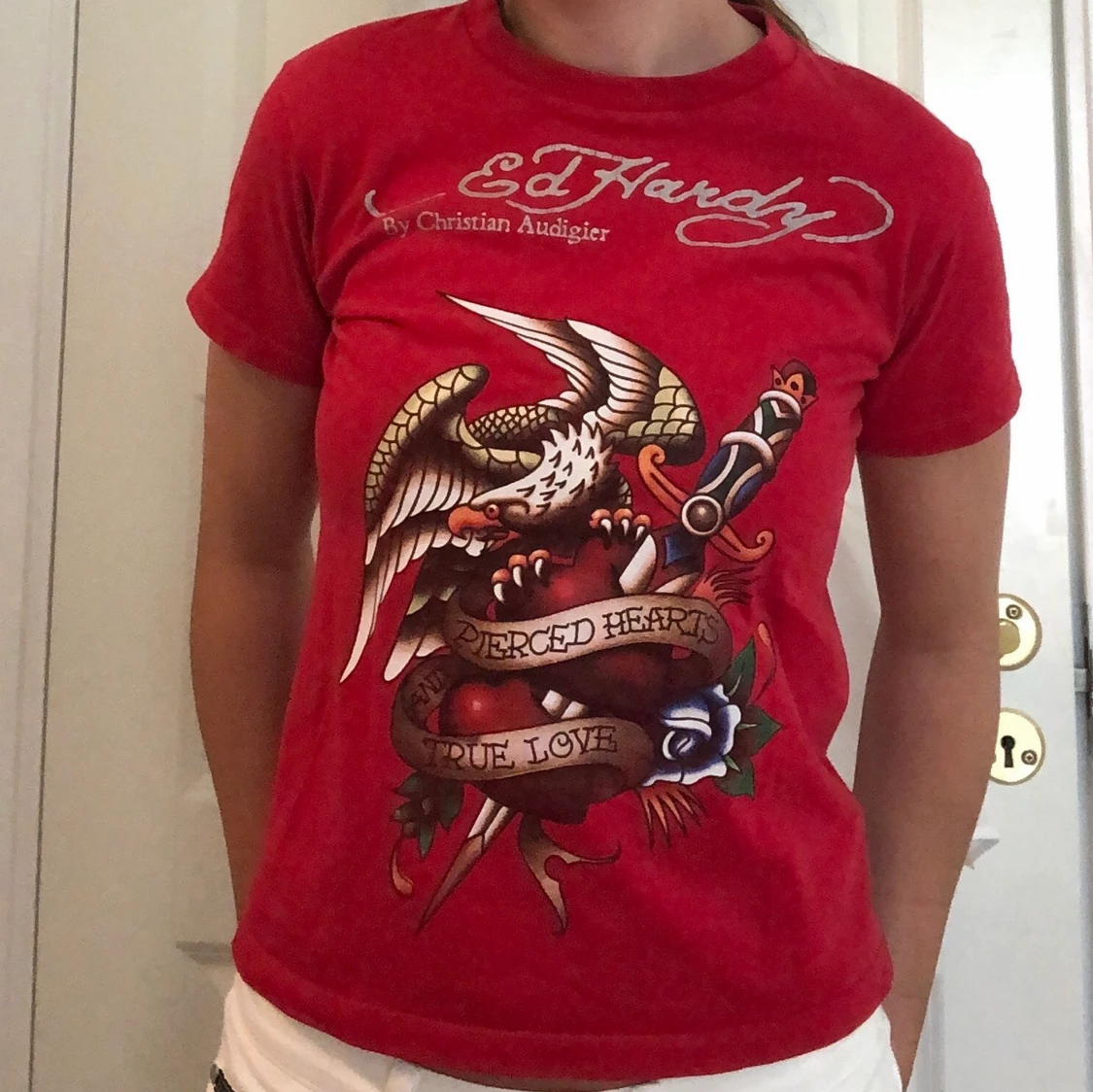 Ascool röd ed hardy t-shirt! Står storlek S i men kan mkt väl va typ en barnmodell, eller så är den menad att sitta tightare! Skriv privat för mer bilder eller frågor och jag kan mötas i Umeå elr frakta för 45kr. 😁