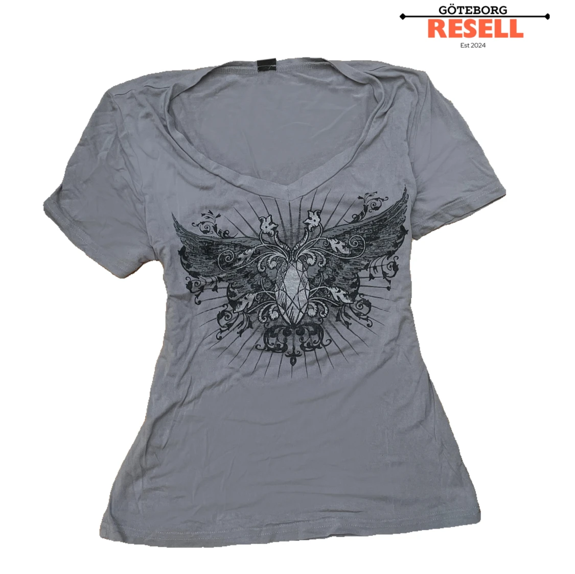 Cool tshirt med edgy vibe. Väl använd. affliction-liknande print. Skick 6/10, passar S, M som tight fit
